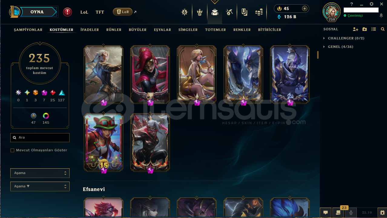 🌟766 SEVİYE 235 KOSTÜM ILK SAHIBINDEN EUW🌟