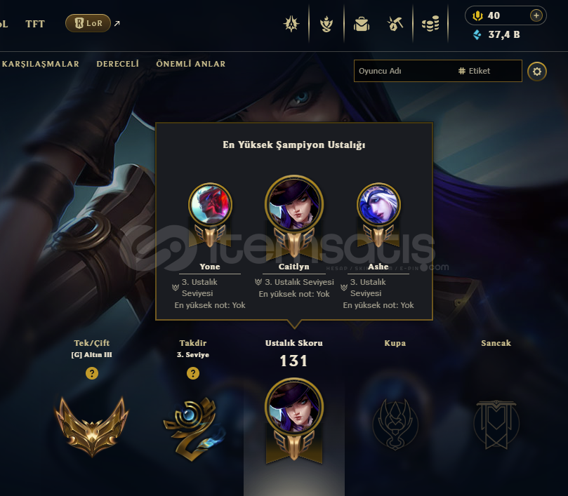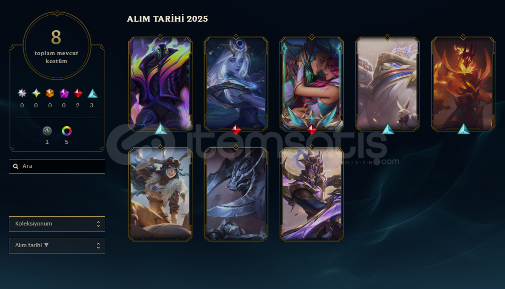 8 Kostümlü Gold 3 36 Level EUW HesapHesapta 37,4B Mavi Öz vardırHesap Tek/Çiftte S2024 S3 Platin 4 bitirmiştirHesap Esnekte S2024 S3 Zümrüt 2 bitirmiştirHesabın op.gg linki : https://op.gg/tr/lol/summoners/EUW/eSKKKX-EUW57