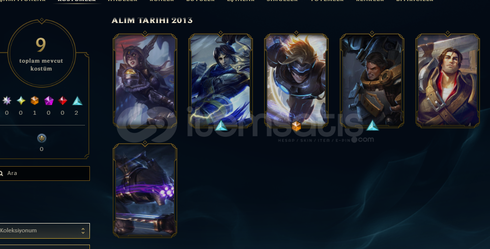 9 Kostümlü 26 Level EUW HesapÖmür boyu garantilidir hiç bir sorun yaşamazsınız.