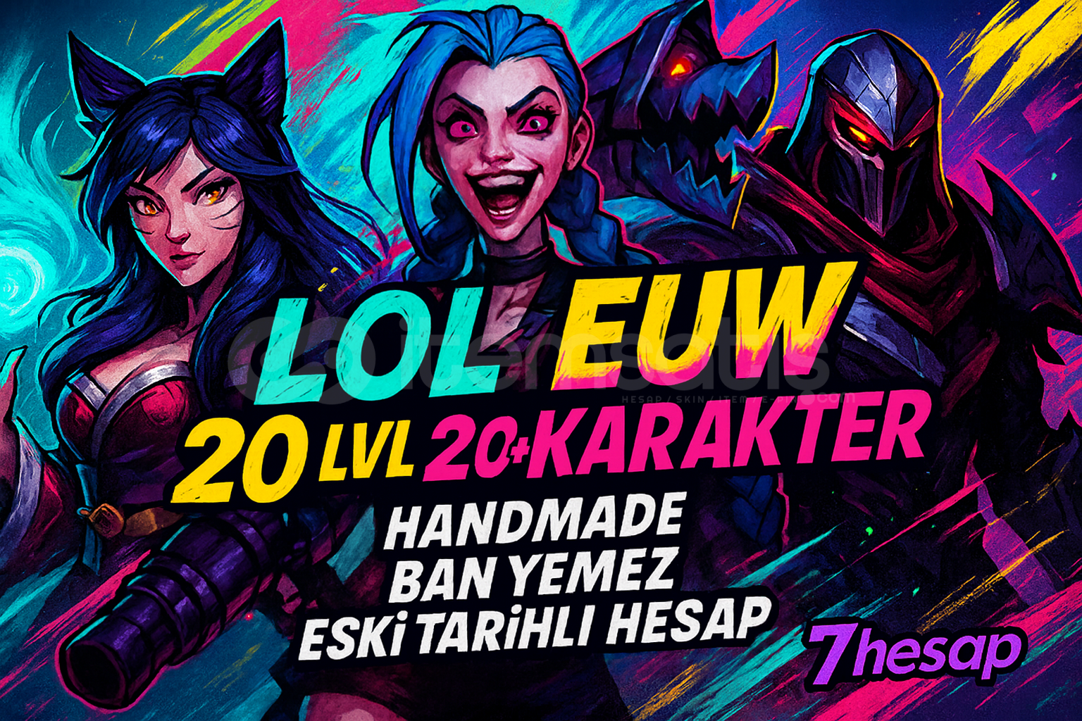 Bu ilanı satın aldığınızda, içerisinde 20 seviye ve 20’den fazla şampiyon bulunan League of Legends EUW (Europe West) sunuculu bir hesap sizlere otomatik olarak teslim edilecektir.