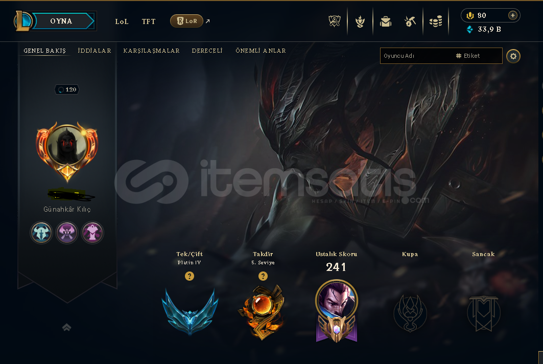 Hesabın hiç bir banı sorunu vs. yokturHesap ömürlüktür al istedigin kadar kullan sat sıkıntı cıkmaz herhangi bir42 skin vardır hepside birbirinden iyi skinlerdirPLAT 4 25 LP DİR 25 LP GELİYOR MAÇ KAZANINCA