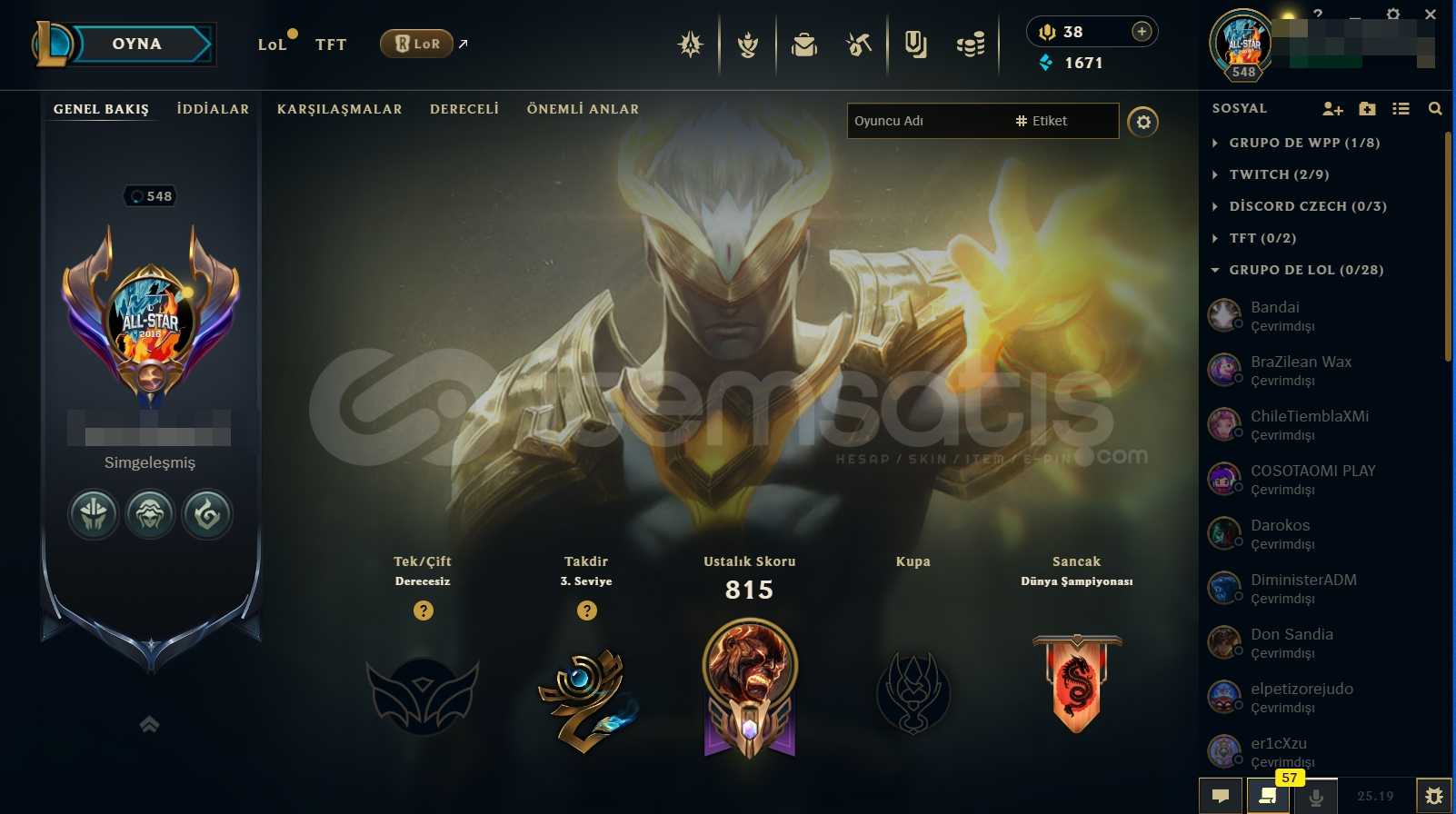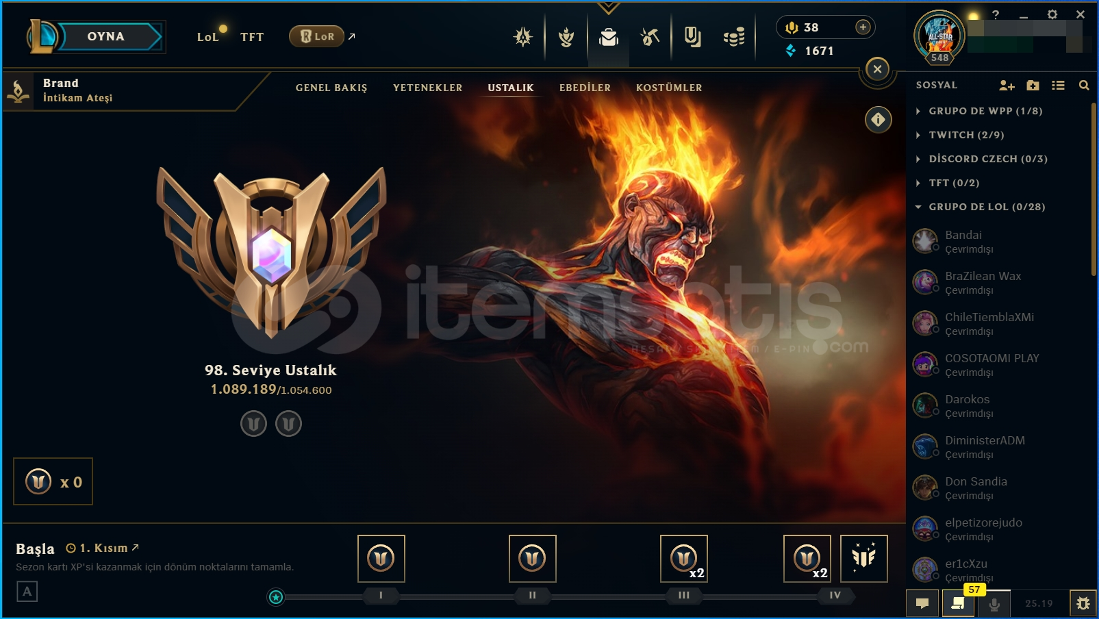 💥 BRAND OTP KOLEKSİYON HESAP | 1.1M USTALIK PUANI | 170 ŞAMPİYON 💥🔥 Kısa Açıklama