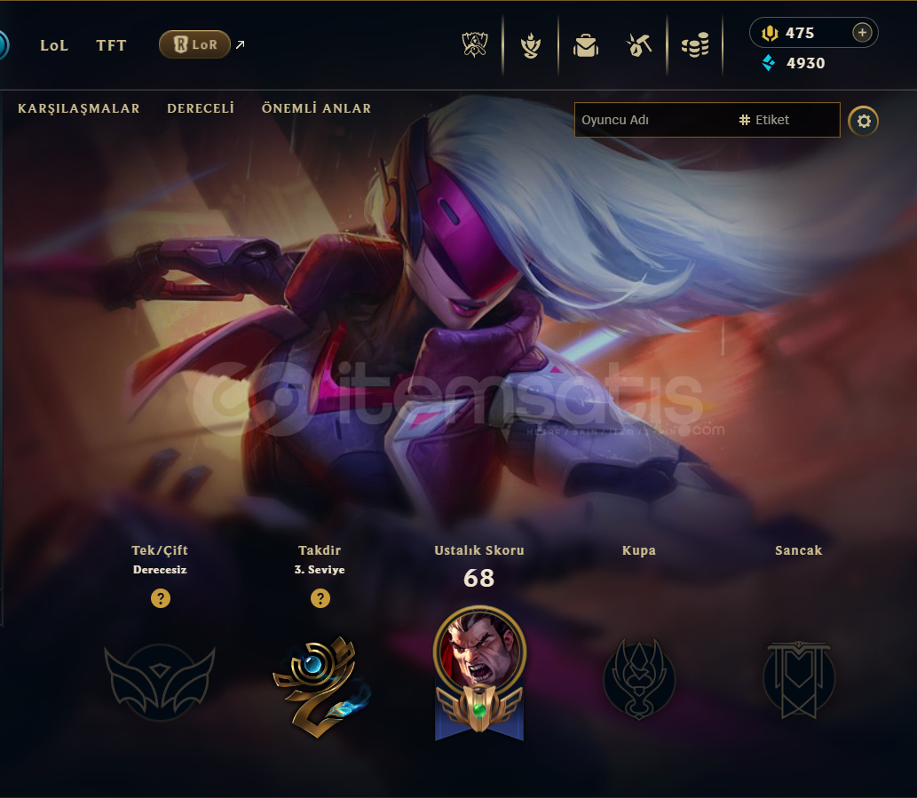 Hesap 2021 kurulum eski hesaptır ban yemez . Hesap sizin mailinize kaydedilecek . Hesap 72 Level ve Unranked . Dereceli hazır ve hiçbir ban yok . Kaliteli ve bol kostümler mevcut . 475 RP mevcut . İsim değiştirme hakkı mevcut . 7/24 sorunsuz teslimat . Alana hayırlı olsun .