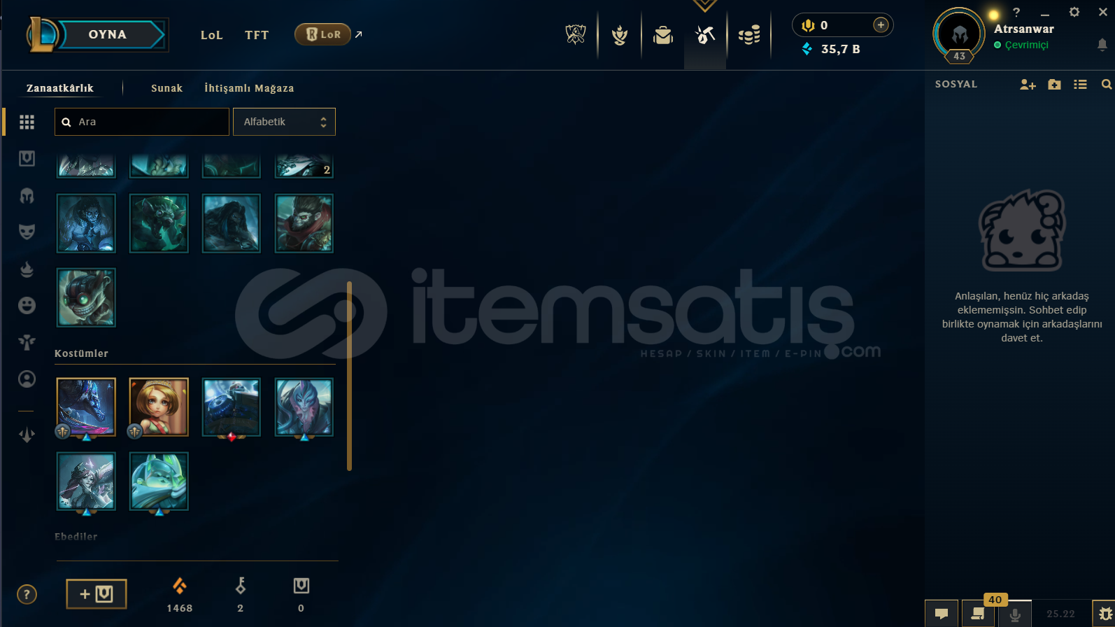 Hesapta bol miktarda mavi öz ve şampiyon kristali bulunmakta ebedi luxu var ve diğer skinlerde güzel.