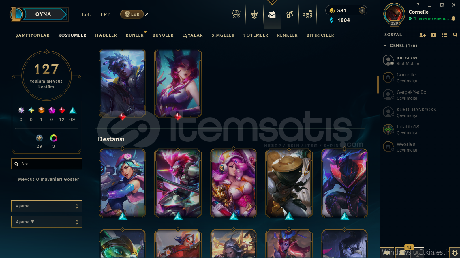 Hesap hem lol mainlemek hem de valorant mainlemelik bir güzel hesaptır Lol hesabı çok iyidir valorant hesabıda güzeldir artık oynanmadığı için satıyorum son maçları görebilirsiniz hesap fotoğraflarda göründüğü gibidir ayriyetten bir sorunuz varsa lütfen sorunuzşampiyon olarak sadece yunara ve mel alınmamıştır