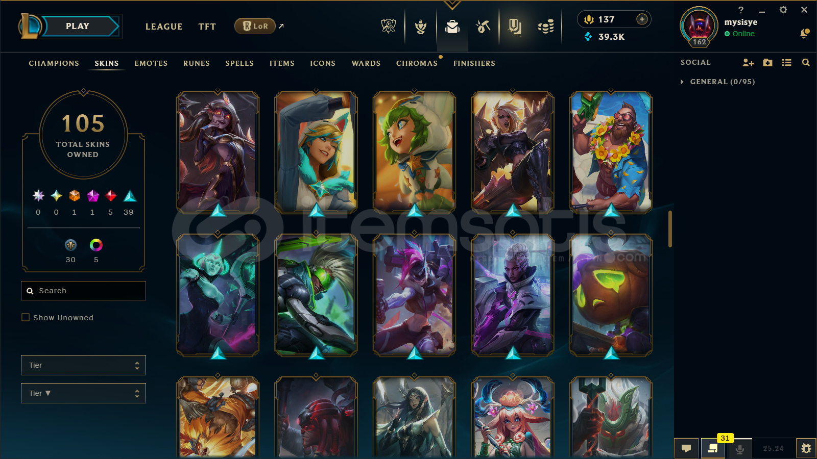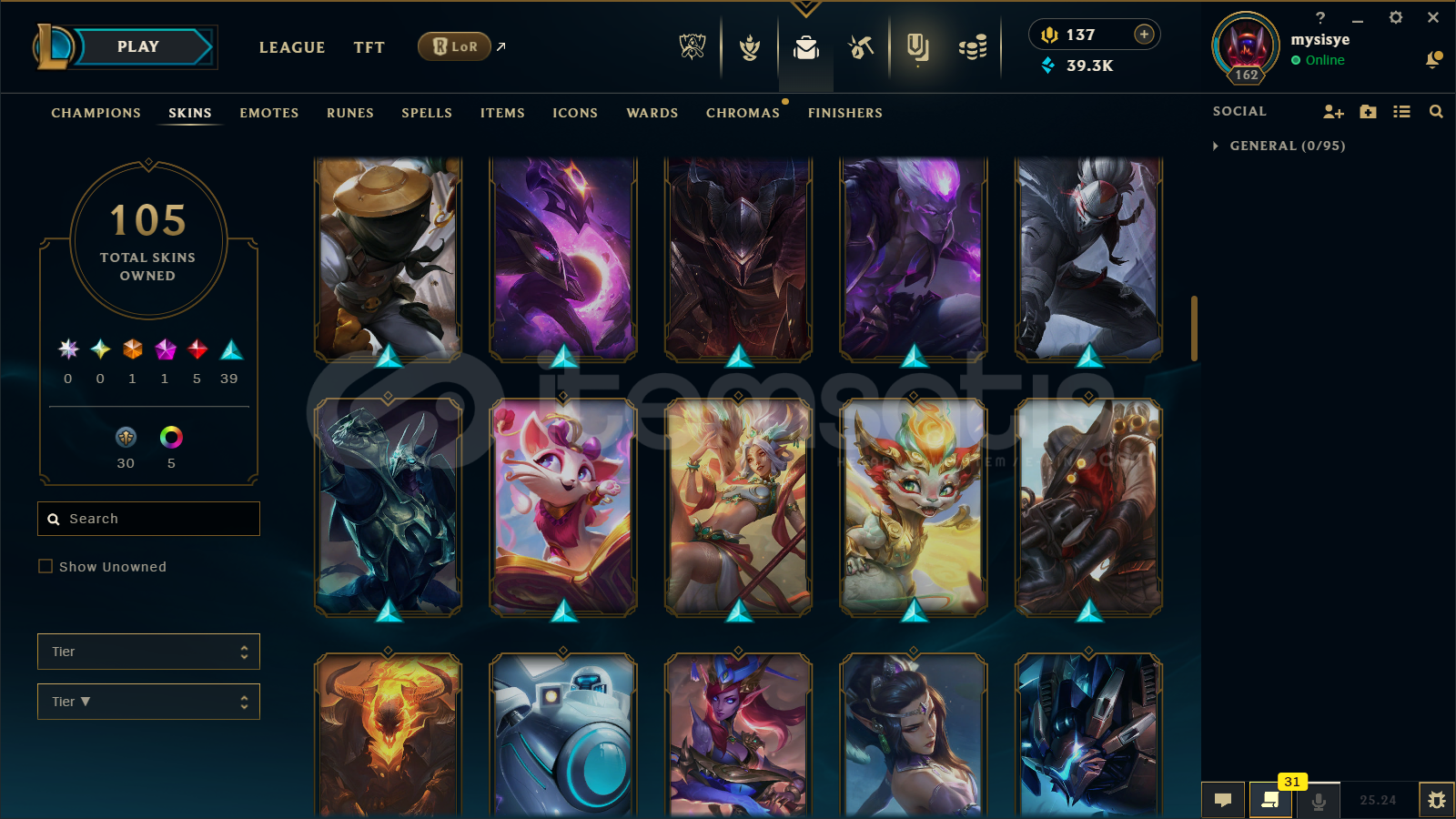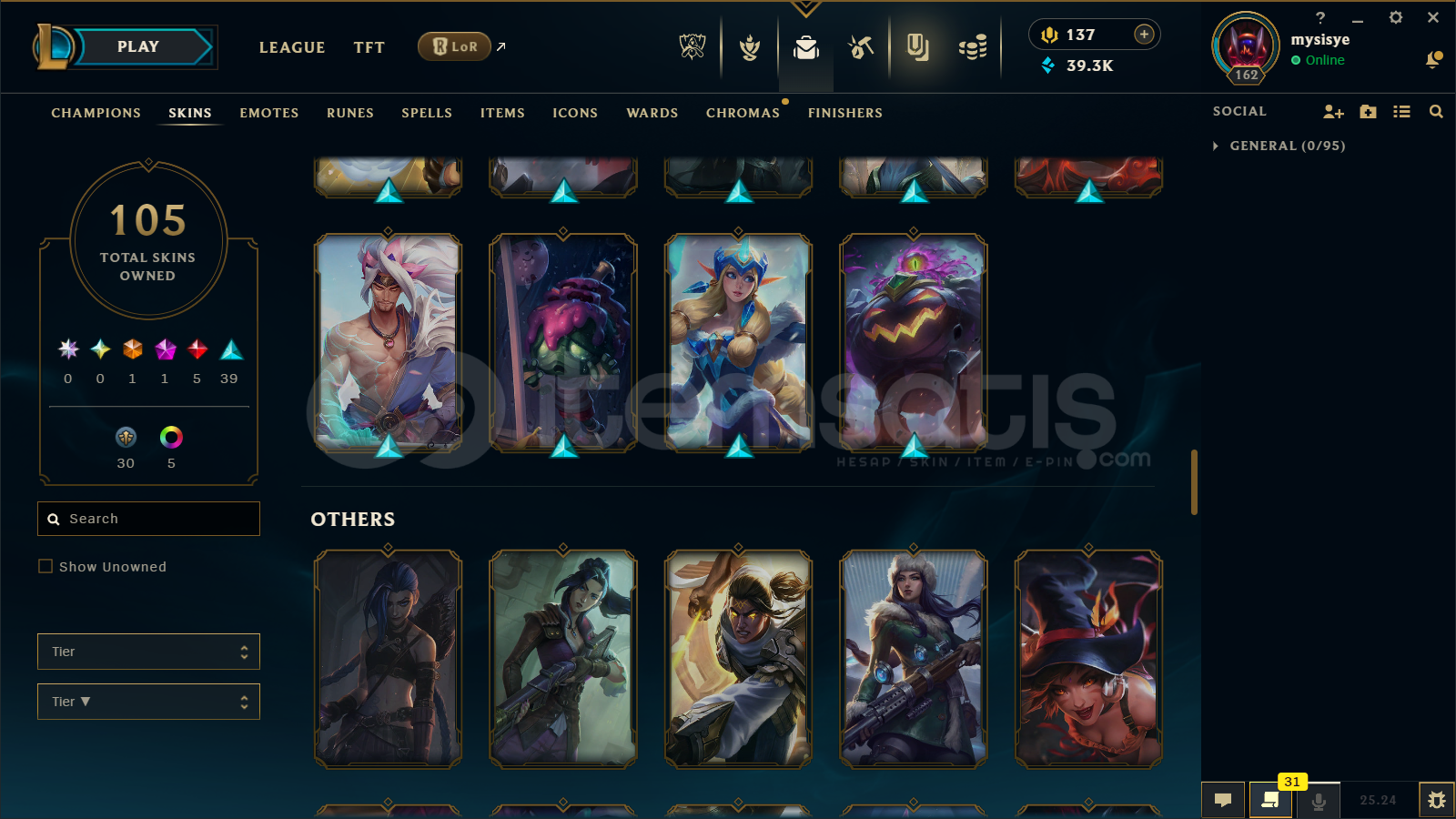 🔷 League of Legends Bilgileri🔹 Sunucu: EUW🔹 Level: 162🔹 Sıralama:• Tek/Çift: Unranked• Esnek 5v5: Unranked🔹 Mavi Öz: 39300🔹 Şampiyon Sayısı : 160🔹 Kostüm Sayısı: 105📊 OP.GG Profili : https://op.gg/tr/lol/summoners/euw/mysisye-EUW✅ Hesaplarımın Tamamen ArkasındayımPiyasadaki bir...