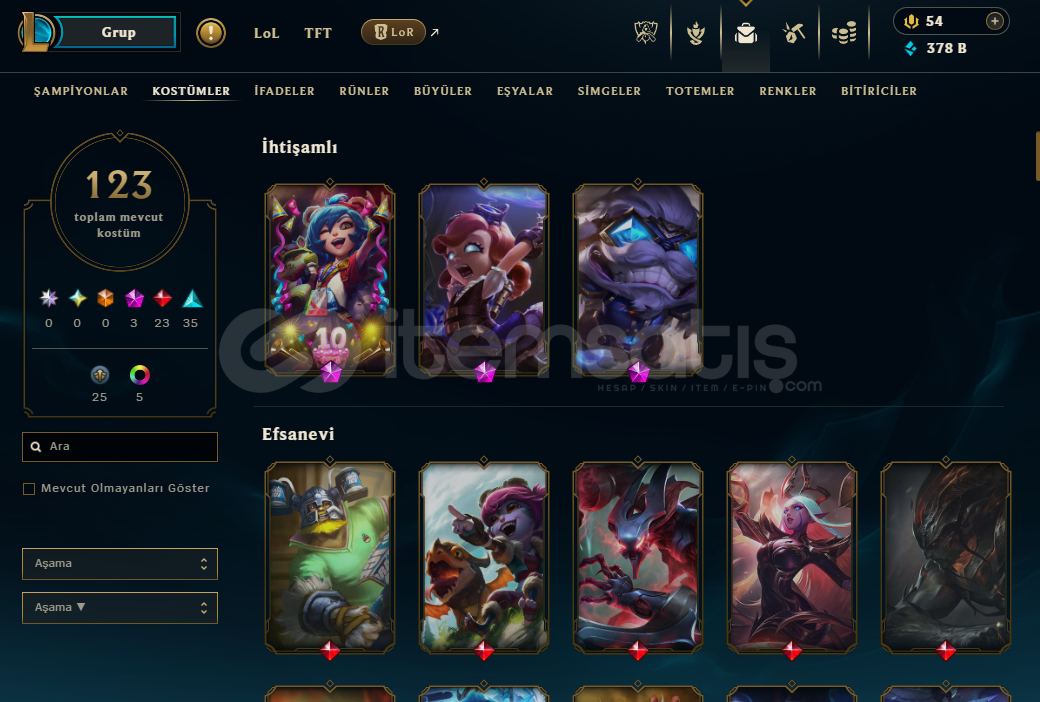 EUW 123 SKİN (LOL) + ASİL VANDAL + 1825 VP