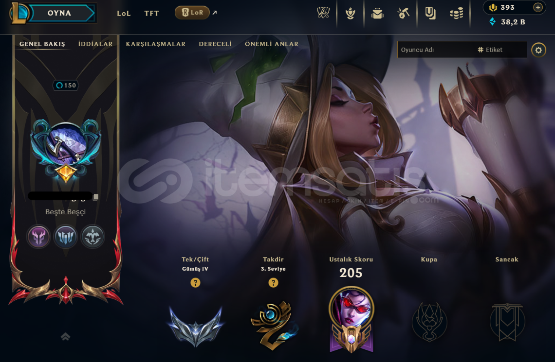 BÖLGE EUWLEVEL : 150LVLRANK: Sılver 4MAİL DEVRİ YAPILACAKTIRTEMİZ VE SORUNSUZ:Hiçbir yasaklama veya ceza geçmişi bulunmamaktadır.Neden Bizi Tercih Etmelisiniz?Hızlı Teslimat: Ödeme sonrası hesabınız anında teslim edilir.Destek: Satış öncesi ve sonrası tüm sorularınız için profesyonel destek.
