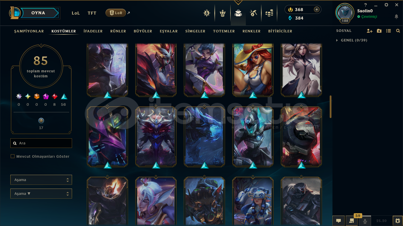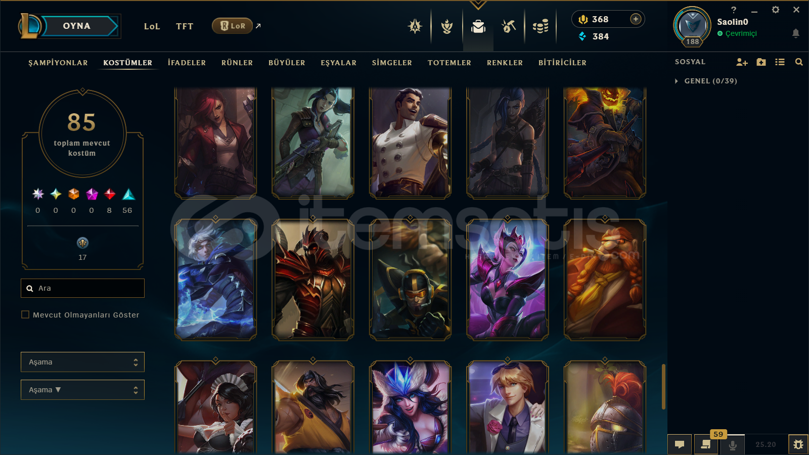 EUW/188 LEVEL / 85 SKİN / 140 HERO+TELEFON+MAİL