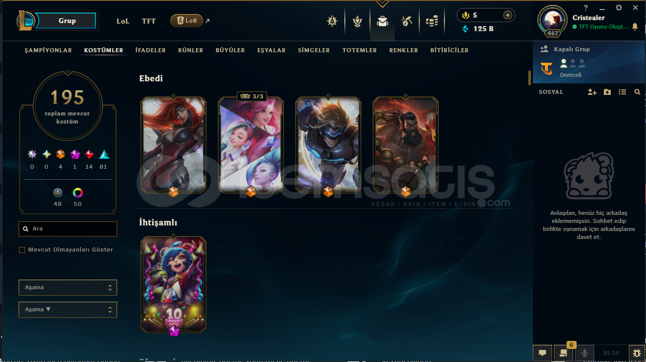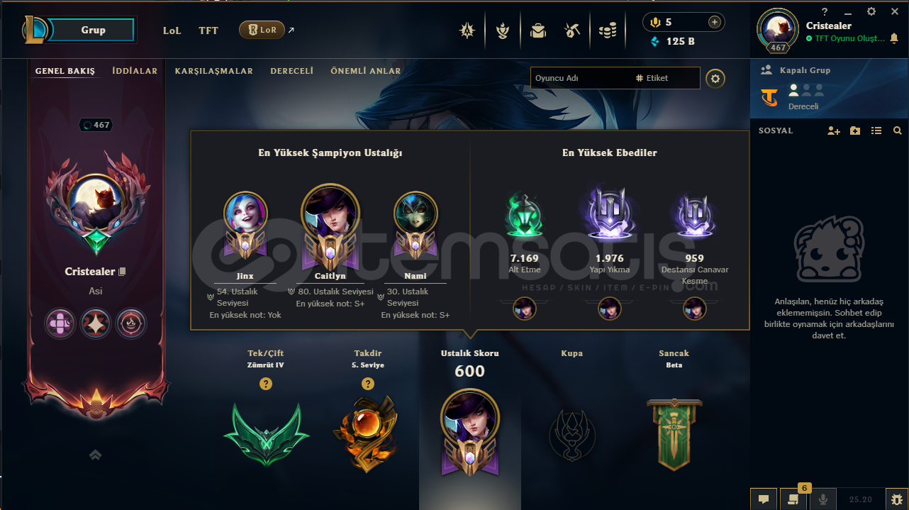 euw server195 lvlzümrüt 4 elodadır80 lvl cait54 lvl jinx30 lvl namitakdir seviyesi 5 tir125 b mavi öz467 lvl125 prestij magaza özü bulunakmaktadır . !tft de az olsa içerik vardırhesapta herhangi bir ban yoktursatın alım sonrası hızlıca teslim ediyorum .