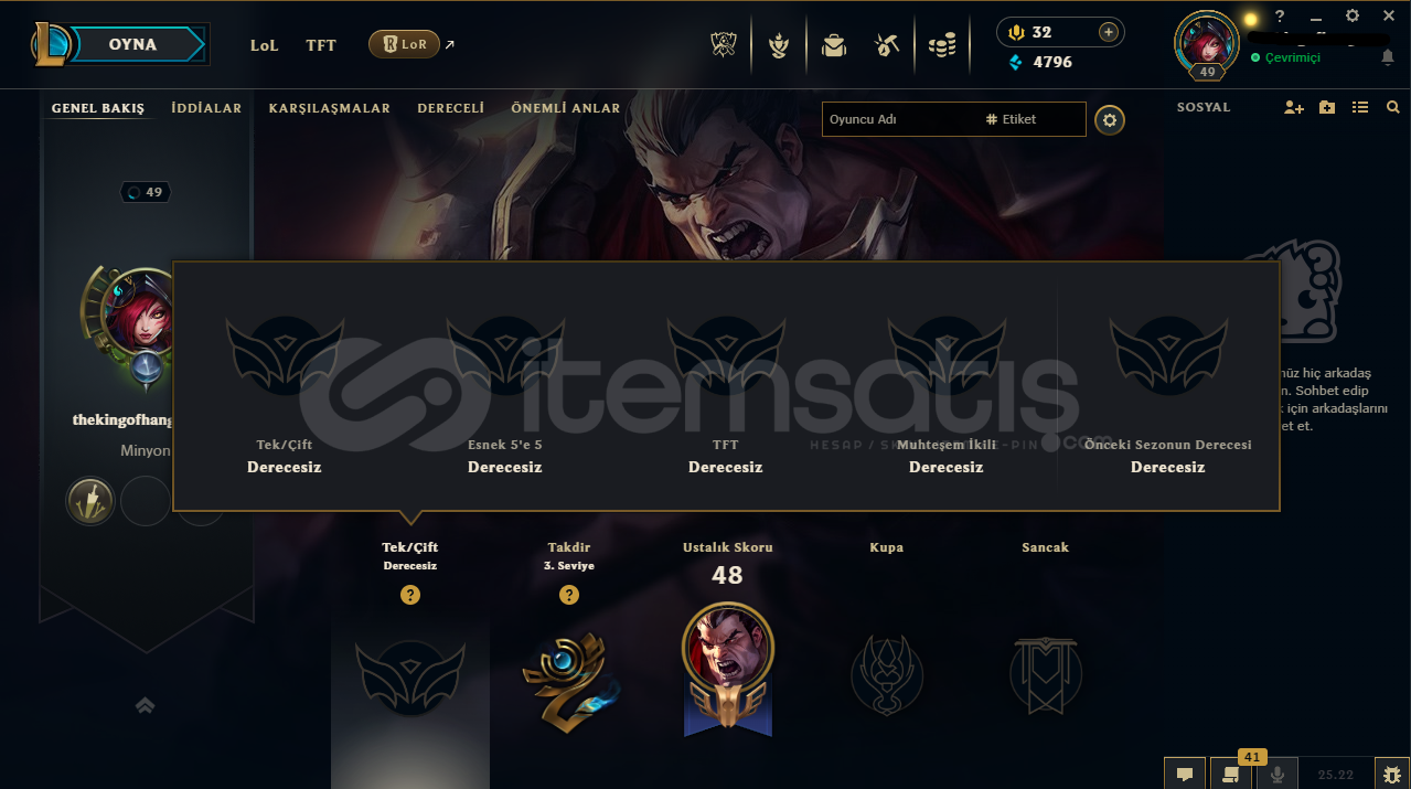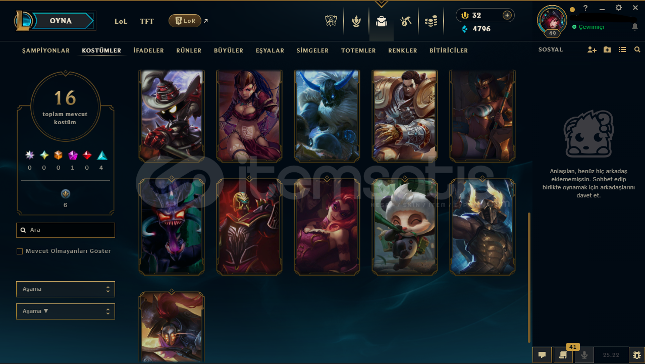 ⭐EUW+2013HESAP+UNRANKED+49LVL+16SKIN+87CHAR⭐