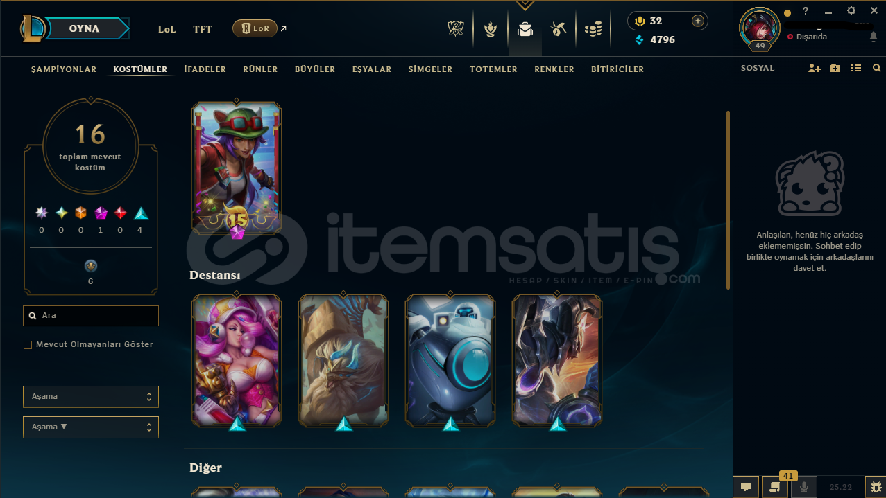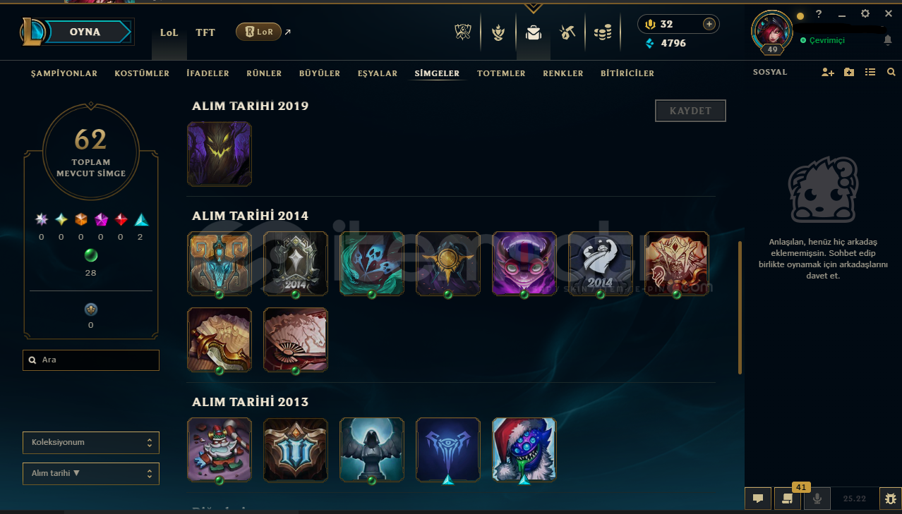 Hesap 2013 Yılında açılmıştır. İçerisinde eski ve bulunması zor olan NADİR-HATIRA skinler, totem veya simgeler mevcuttur.