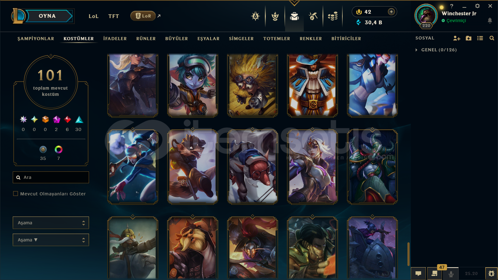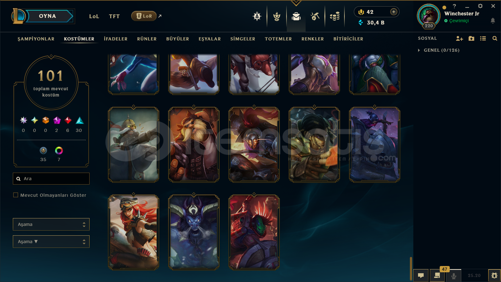 hesap çok güzel çıktı herşey var yağmacı asil champions (abartmıyorum) tavsiye ederim
