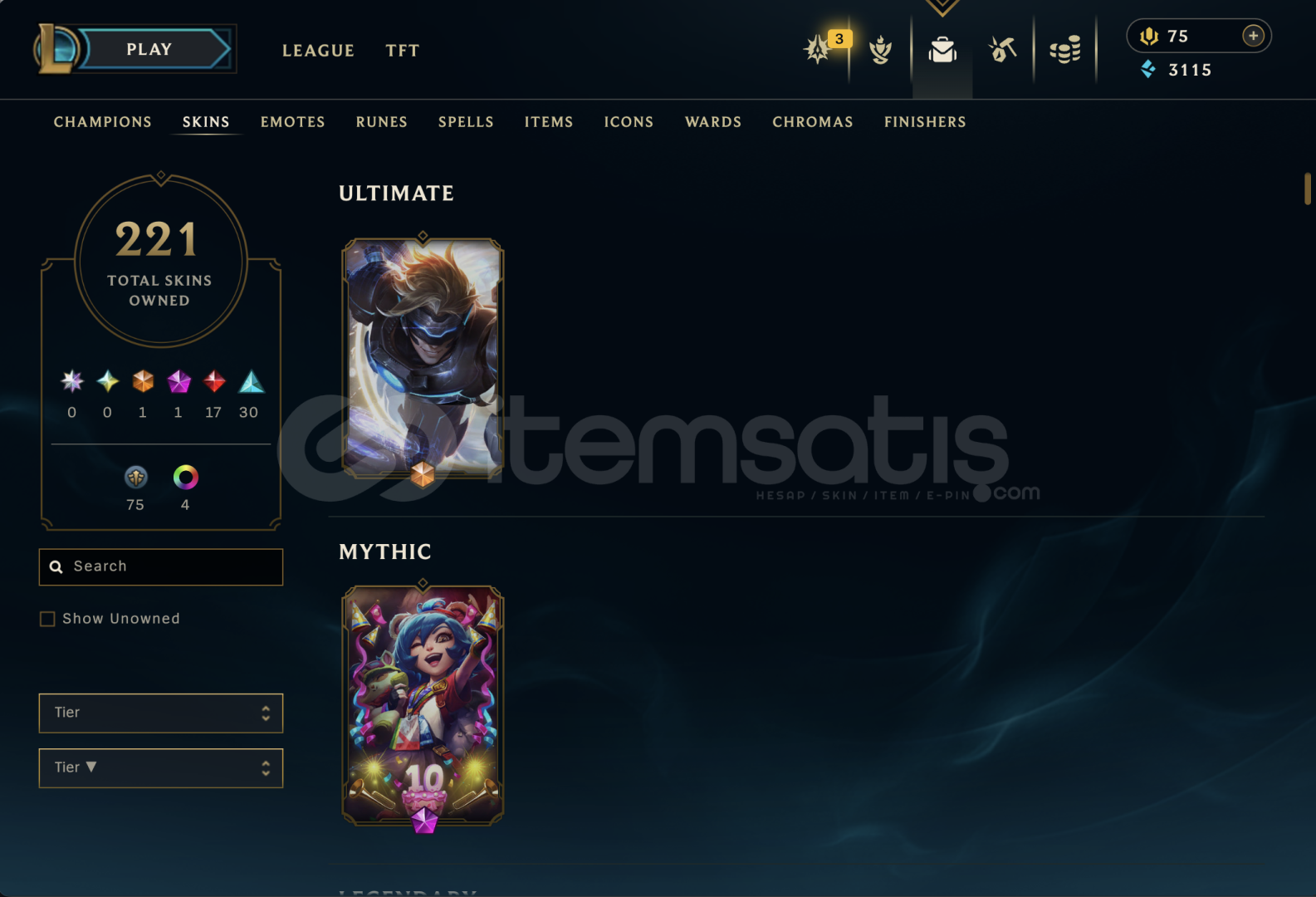 hesap euw sunucusunda 71 lwl bronze 3 94lp dir 15 win ile az maçlıdır kolayca kasılır 221 skin bulunmaktadır 33 hero eksiktir genelde yeni herolardır hesap eski hesaptır 71 leveldır zaten bi bakımdan rare bi hesaptır az lwl cok skinlidir eski victorious skinleride mevcutrur aldıgınız an sms gelir hemen teslim ederim merak ettiğiniz soruları sorabilirsiniz telefon onayı vardır hesapta fiyat sondur