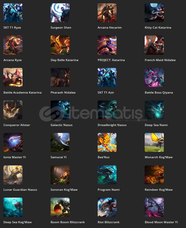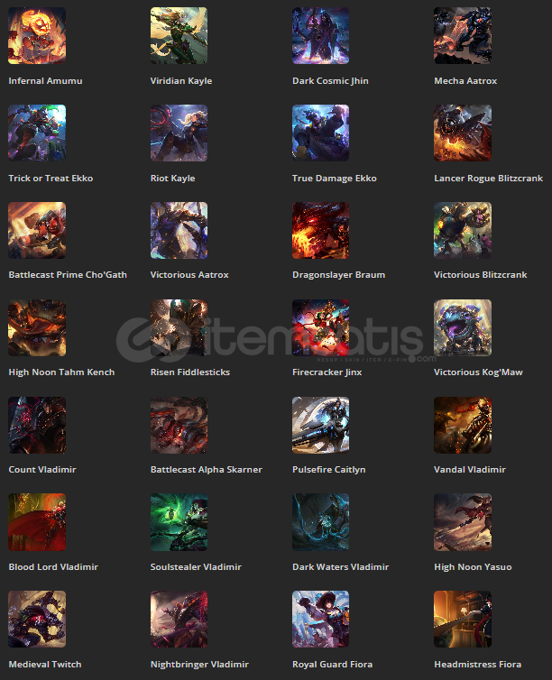 Aşağıda karışık verilen skinlerden istediğinizi aratabilirsiniz: Mevcut olanların hepsi karakter sınırından dolayı burada değildir!.