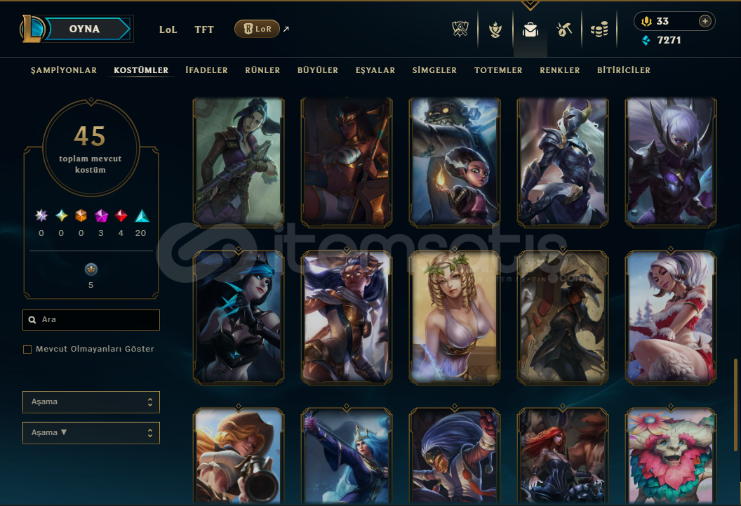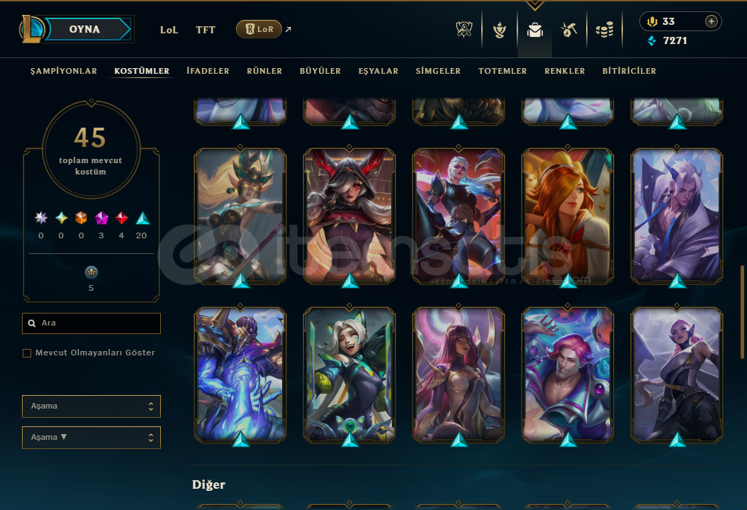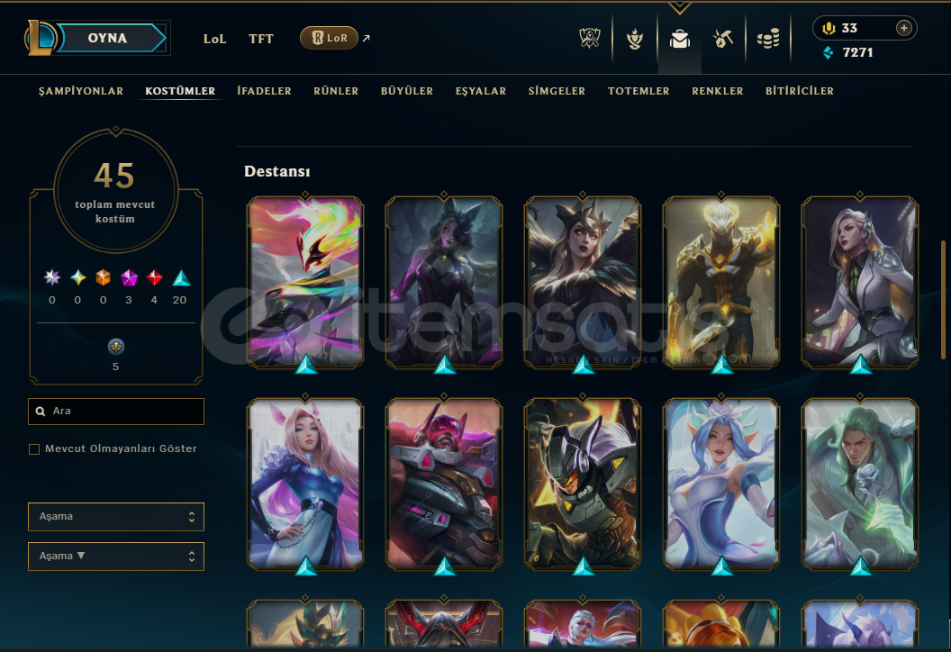 ⭐EUW+45SKIN+70 LVL+72CHAR+2PRESTIJ+KAÇMAZZ⭐