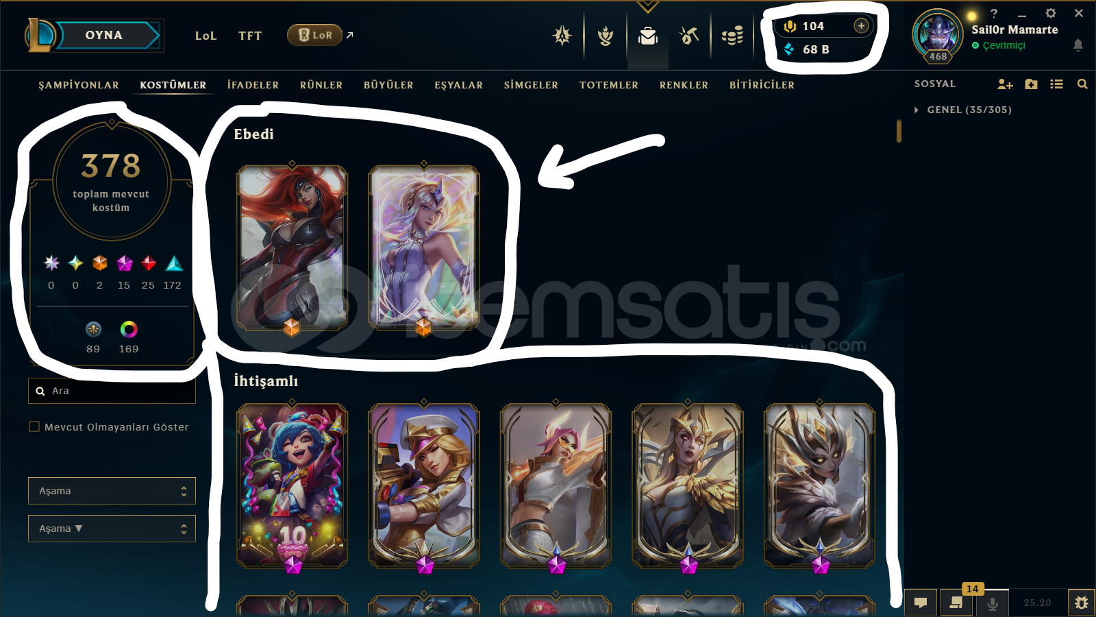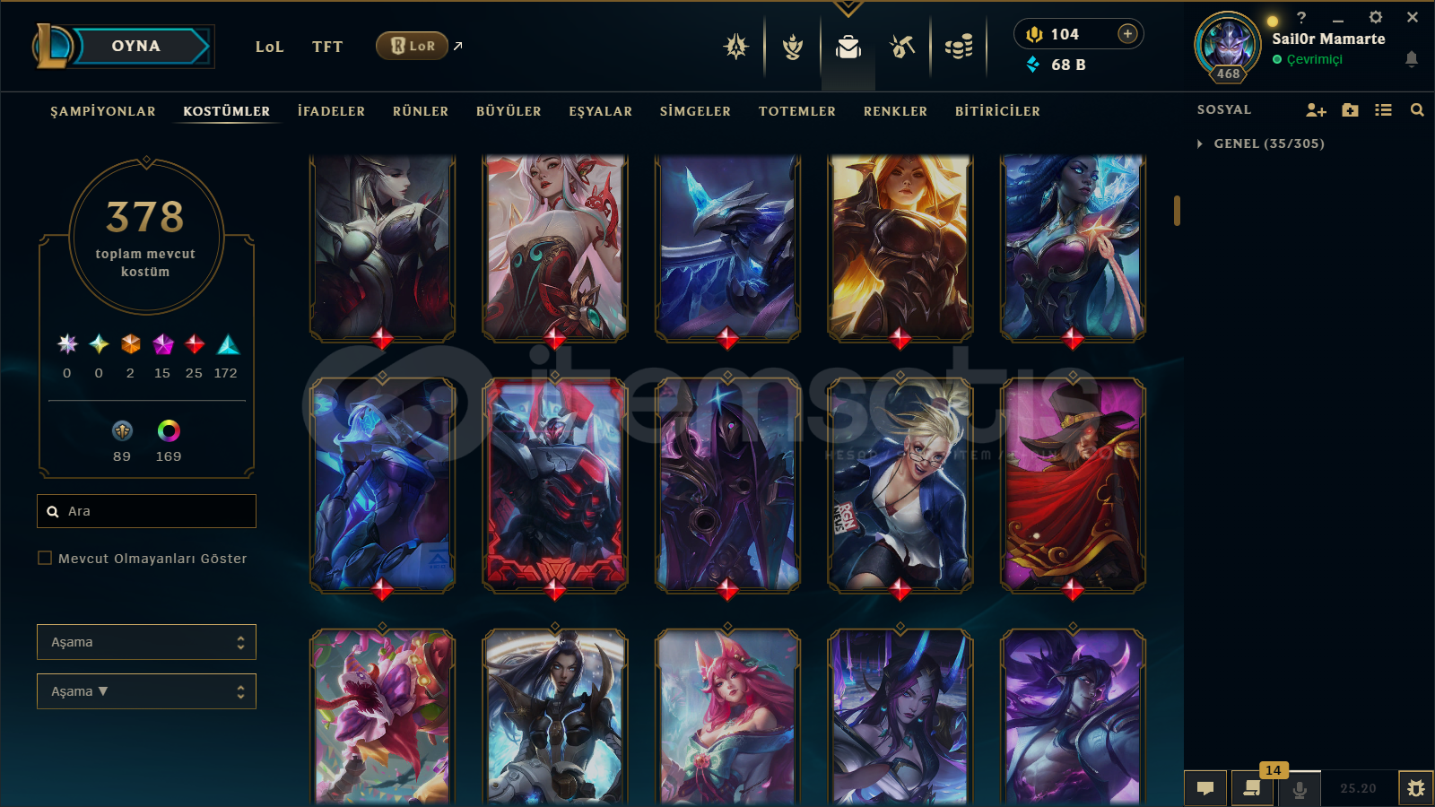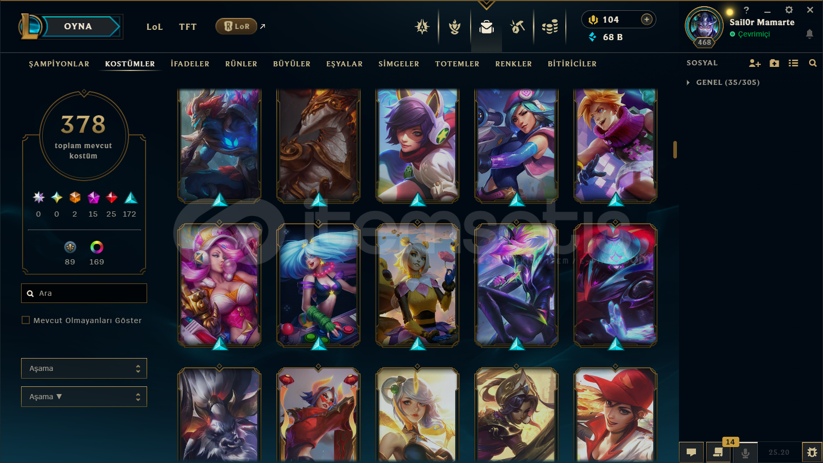 Aktif olmasam bile otomatik teslimat yapılmaktadır.En hızlı ve güvenilir alışveriş yapabileceğiniz mağazaya hoşgeldiniz :+4500 Başarılı satış güvencesiyle..MAİL : KENDİ MAİLİNİZE DEVREDİLECEKRANK : TEK ÇİFT ZÜMRÜT III / ESNEK PLATİN III / MUHTEŞEM İKİLİ PLATİN IV / TFT PLATİN IVHERO : 170/171SKIN&...