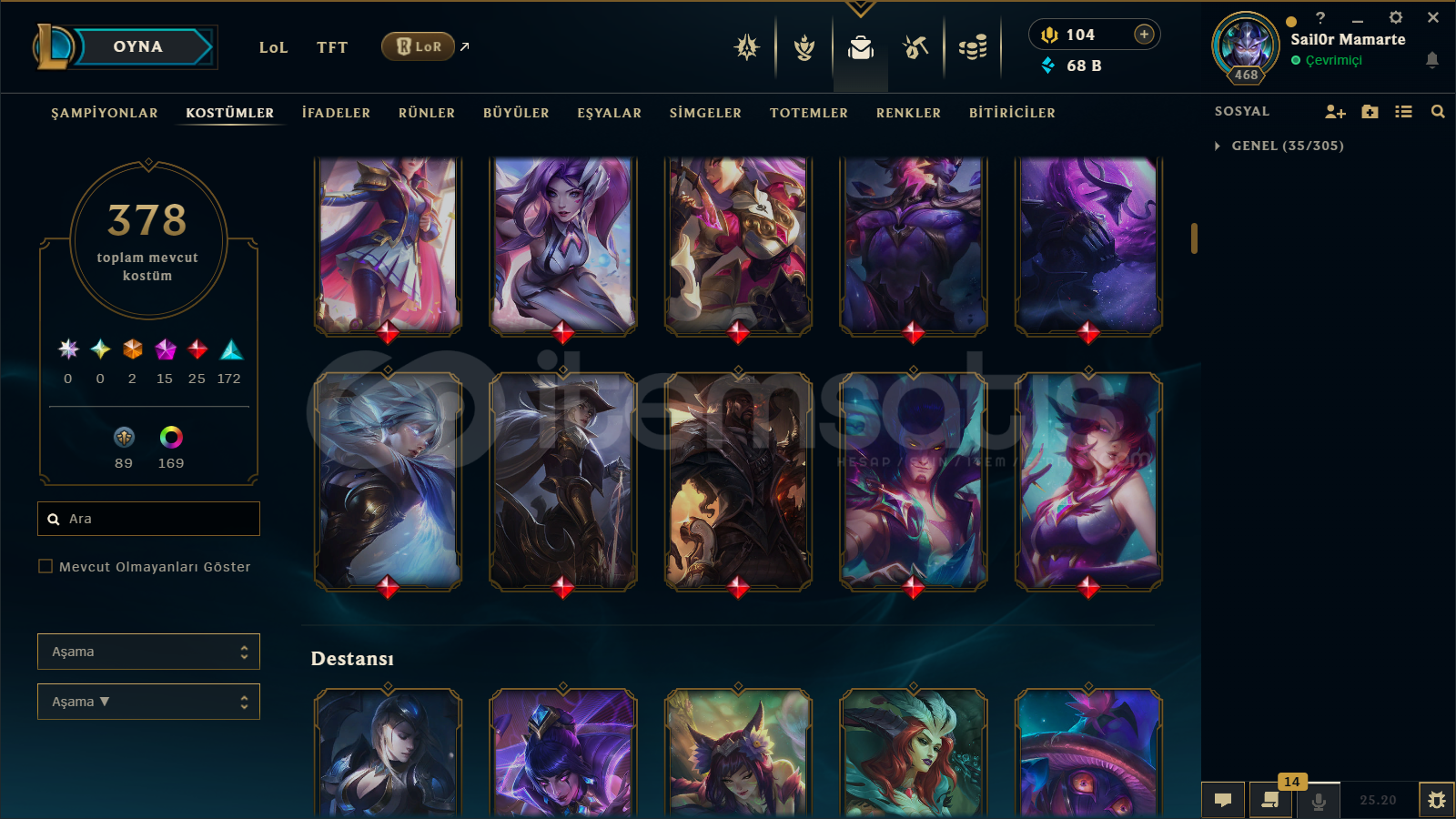 EUW / 468 LEVEL / 378 SKİN / 170 HERO + MAİL