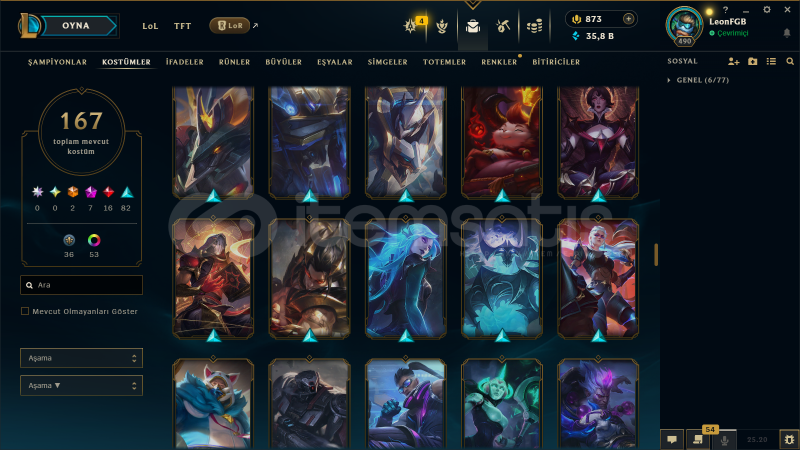 Aktif olmasam bile otomatik teslimat yapılmaktadır.En hızlı ve güvenilir alışveriş yapabileceğiniz mağazaya hoşgeldiniz :+4500 Başarılı satış güvencesiyle..MAİL : KENDİ MAİLİNİZE DEVREDİLECEKRANK : TEK ÇİFT G- BRONZ I / ESNEK G- GÜMÜŞ IIHERO : 170SKIN : 167SİMGE SAYISI : 322MAVİ ÖZ :&nbs...
