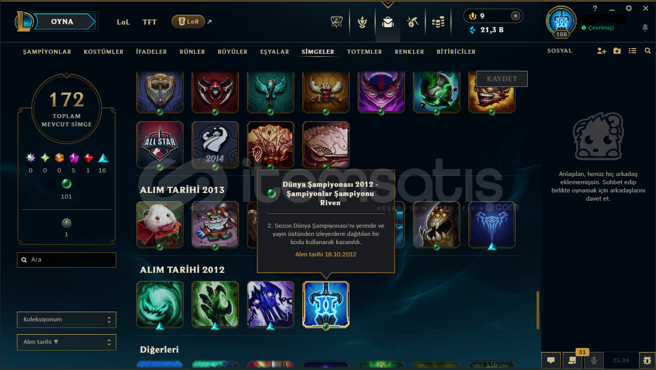 108 Level + UNRANKED (EUW) Hesaptır.