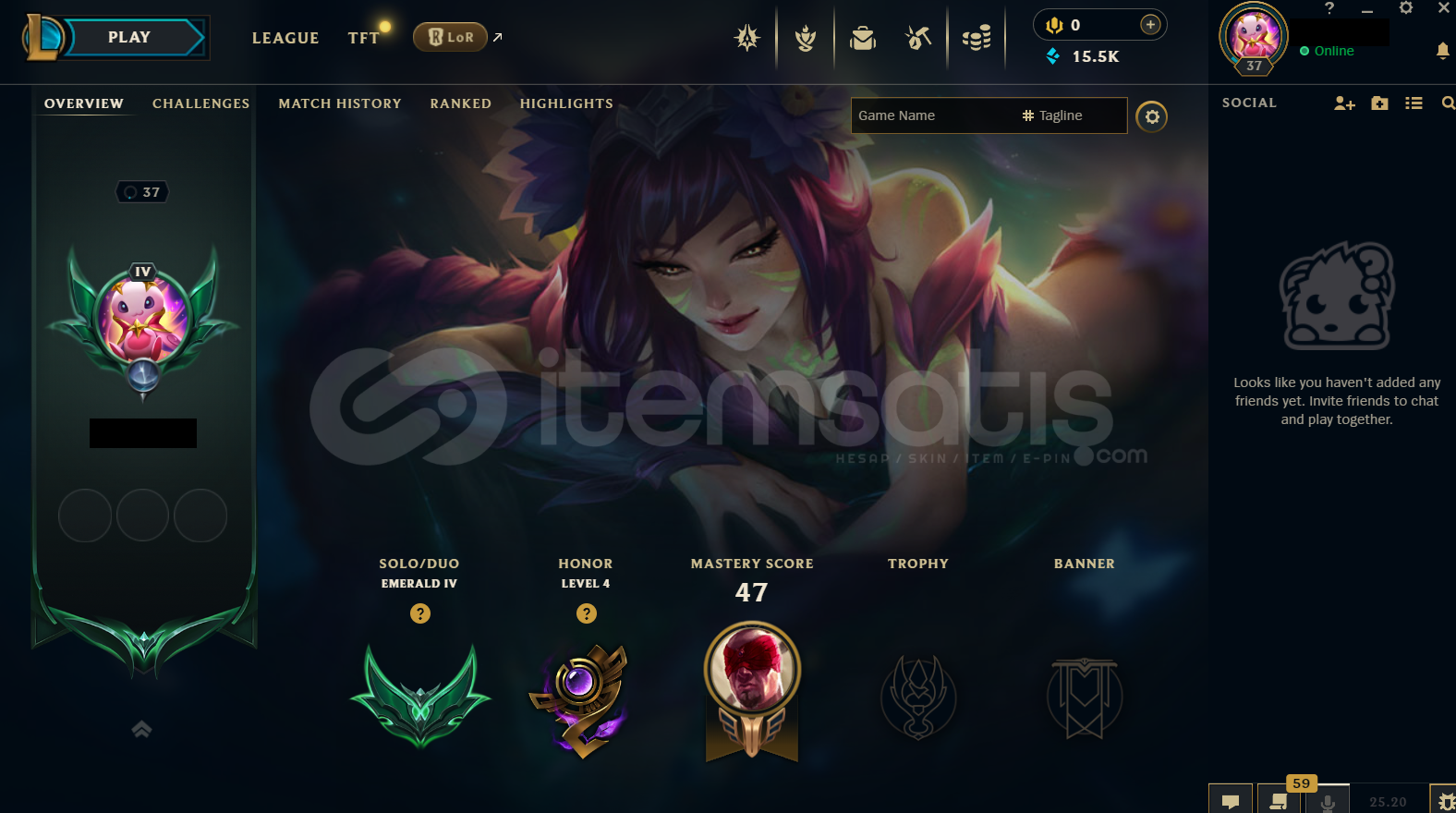 • Hesap EUW Tek/Çift Zümrüt 4 - 20 Lp - 32 Win 18 Lose 64 Winrate - Esnek Plat 3 EUW LoL Hesabıdır. Geçen Sezonu Zümrüt Bitirmiştir.