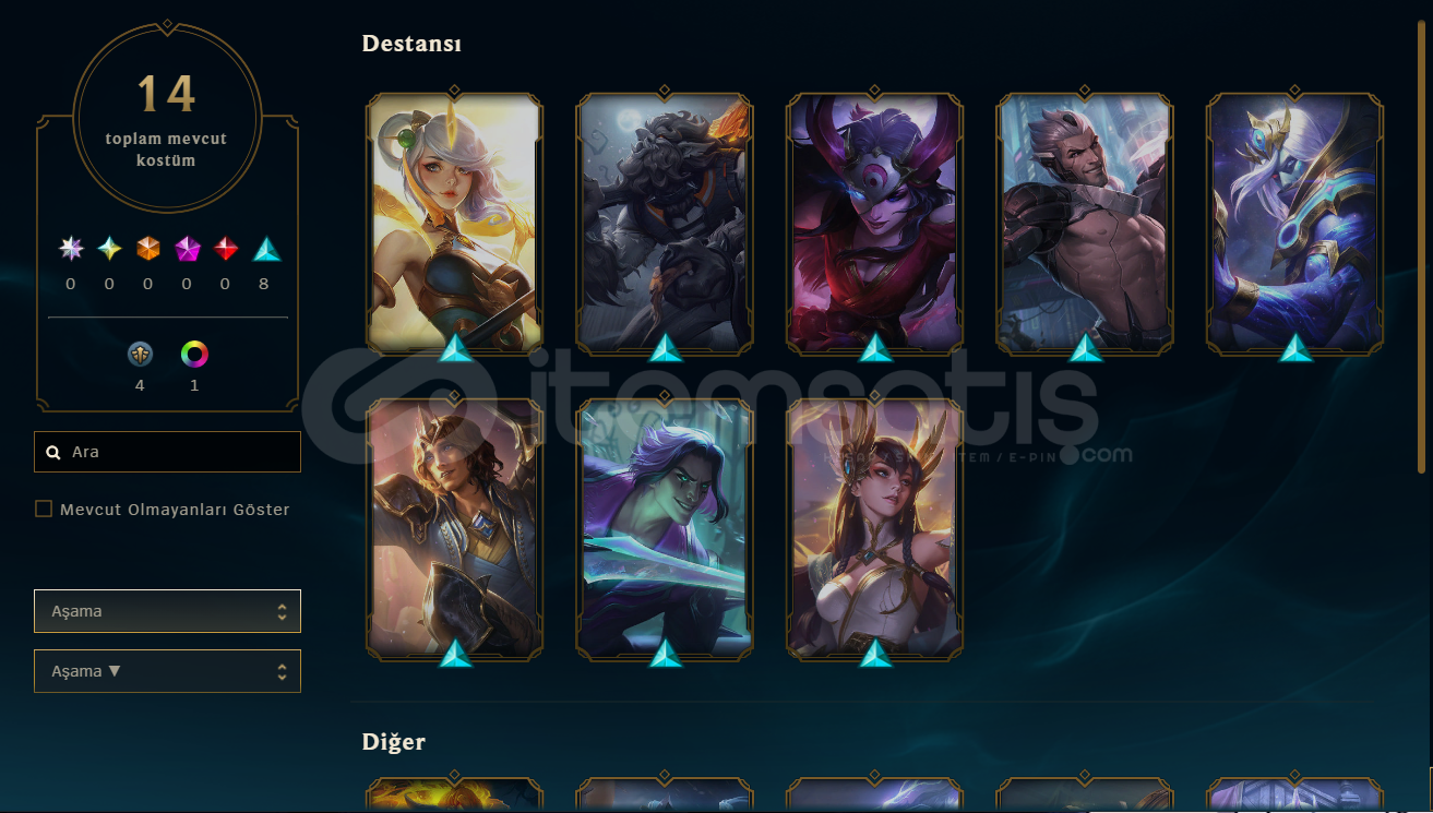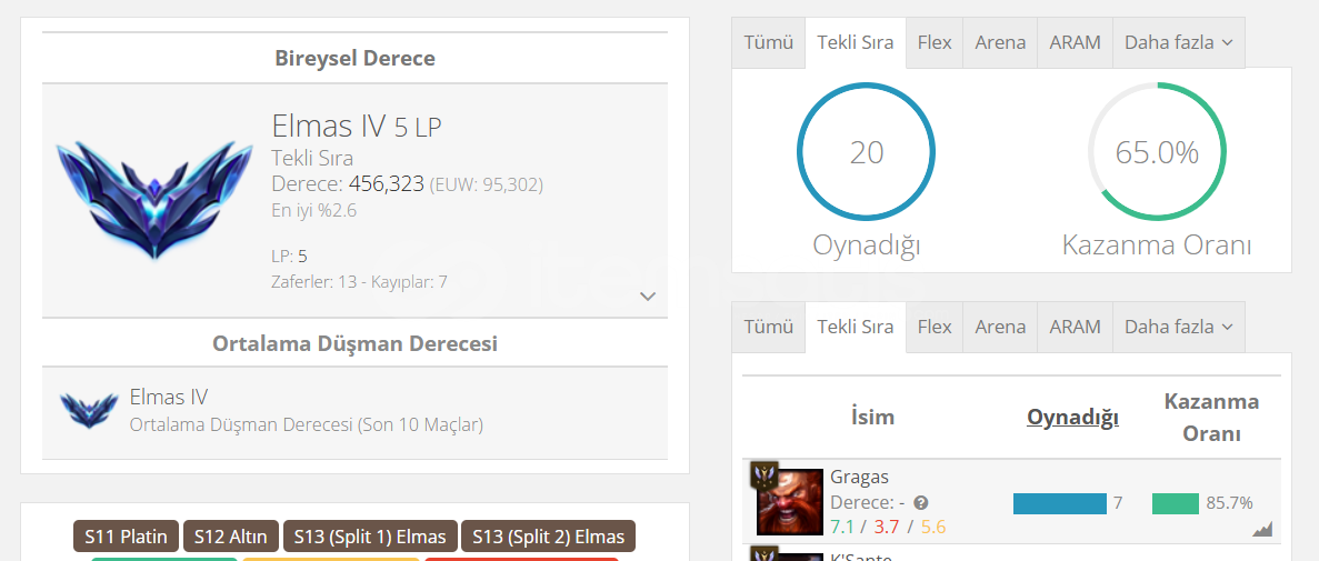 euw 65 wr diamond 4 hesap 14 kostüm +25lp gain
