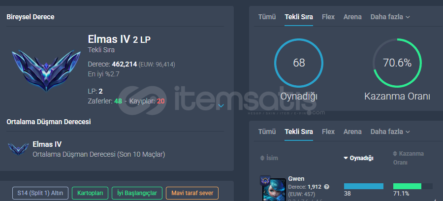6k mavi öz ve 753 turuncu öz vardır.hesap 39 seviyedirhesapta psyops master yi,worldbreaker sion,project katarina,psyops sona,sentinel olaf kostümleri mevcuttur39 tane şampiyon vardır.3 refund bulunmaktadırGüvenilirdir hesabı almadan önce hesap hakkında sormak istediğiniz konuları bana sorabilirsiniz.Hesabı satın aldıktan sonraki sorumluluklar size aittir.Hesabın alımından itibaren kayıt başl...
