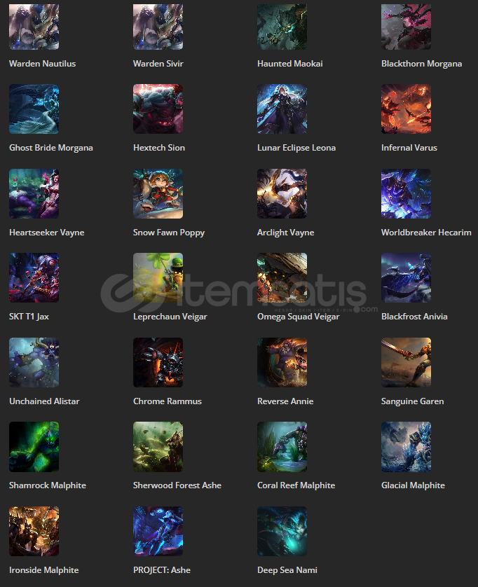 75 Kostüm ve 101 Şampiyon bulunmaktadır.