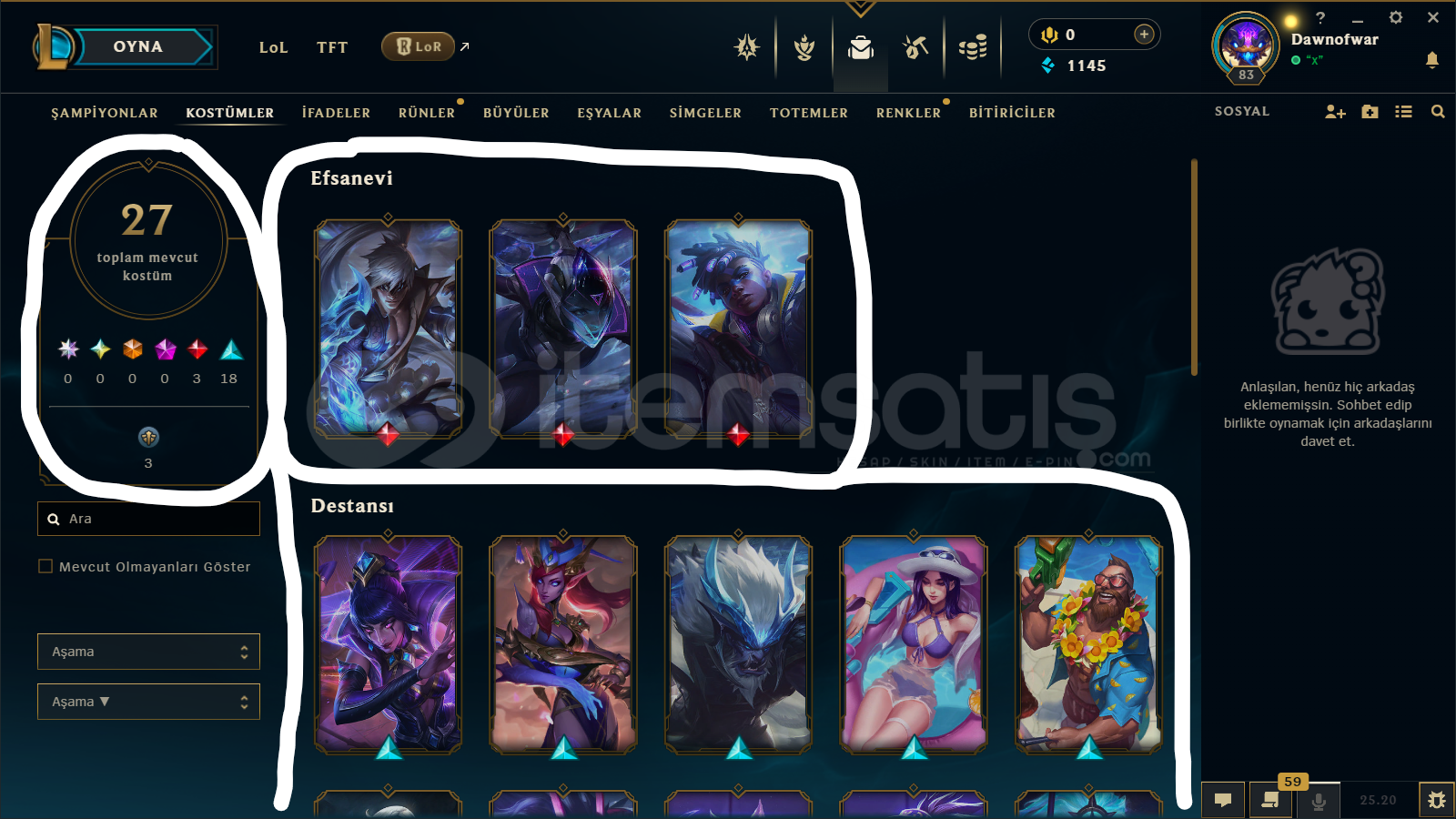 Aktif olmasam bile otomatik teslimat yapılmaktadır.En hızlı ve güvenilir alışveriş yapabileceğiniz mağazaya hoşgeldiniz :+4500 Başarılı satış güvencesiyle..MAİL : KENDİ MAİLİNİZE DEVREDİLECEKRANK : TEK ÇİFT DERECESİZ / ESNEK DERECESİZHERO : 50SKIN : 27SİMGE SAYISI : 113MAVİ ÖZ : 1145&nbs...