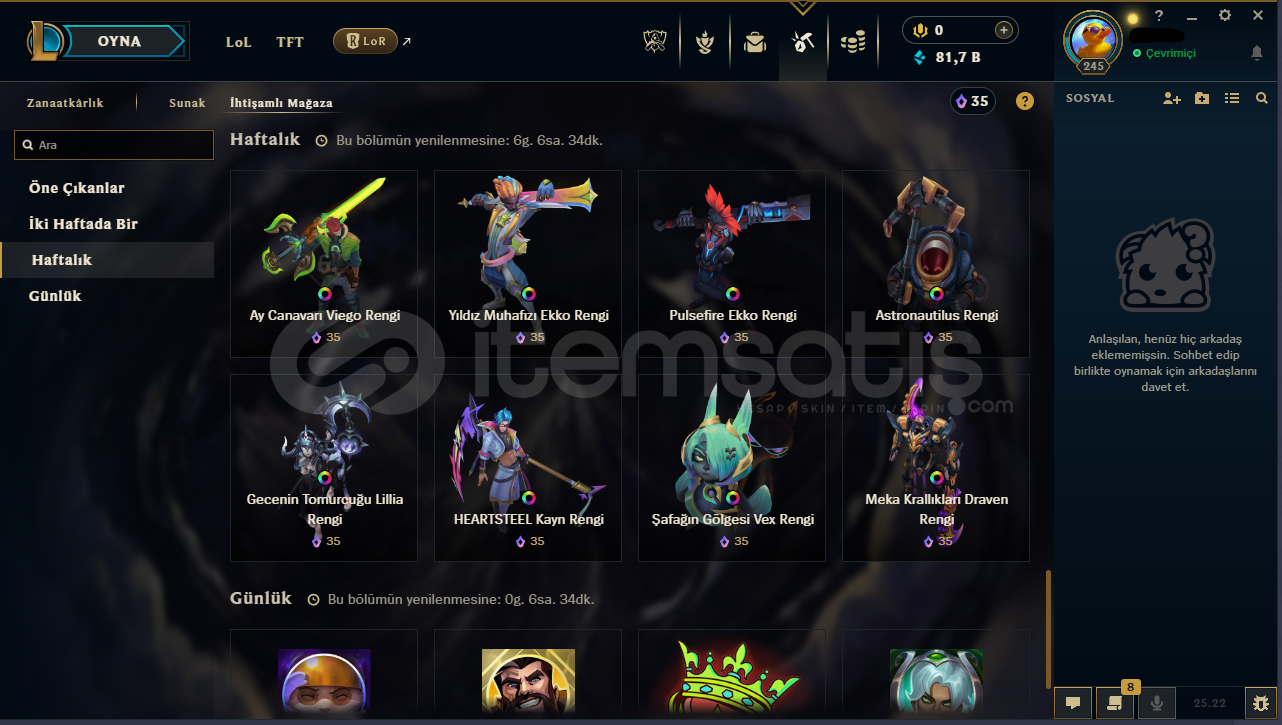 81,7K Mavi Öz & 865 Turuncu Öz + 11 Sandık Bulunmaktadır.