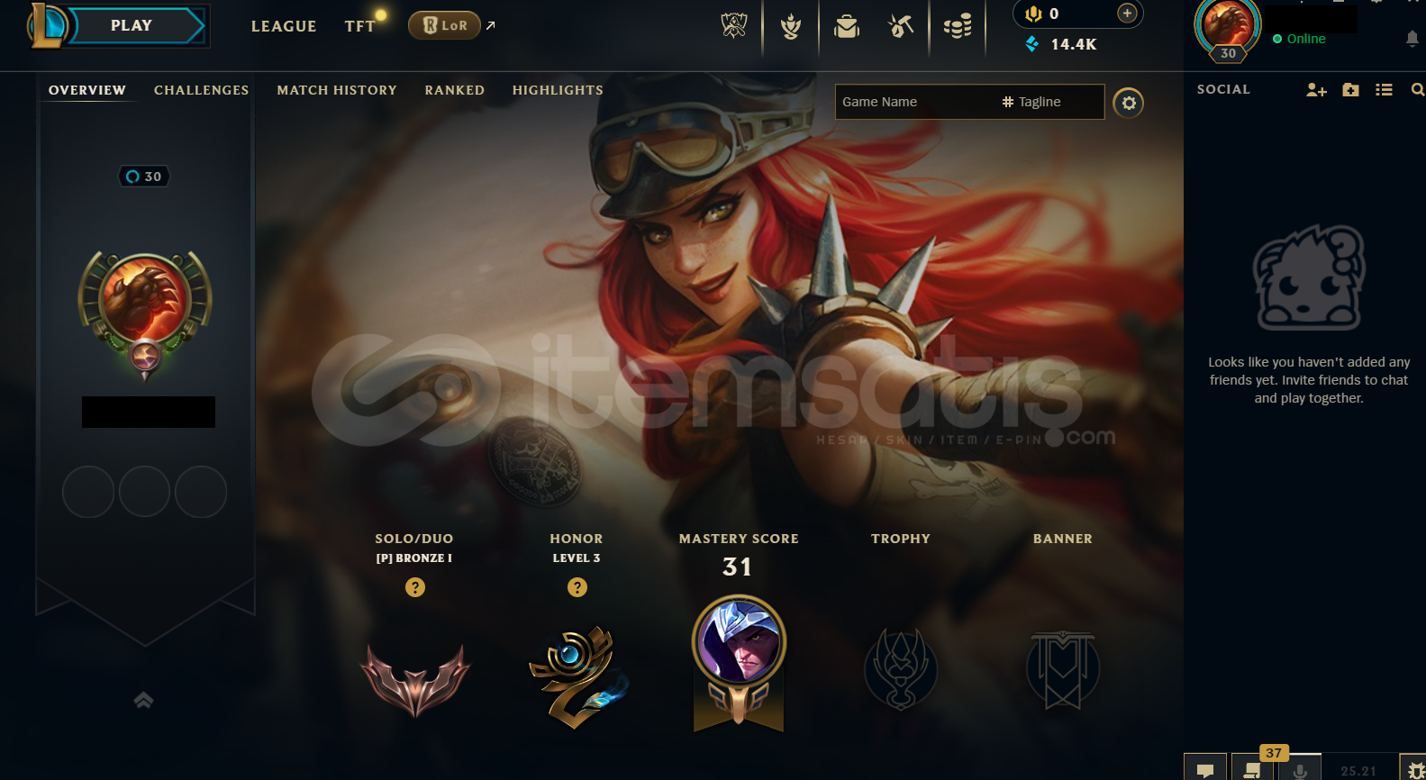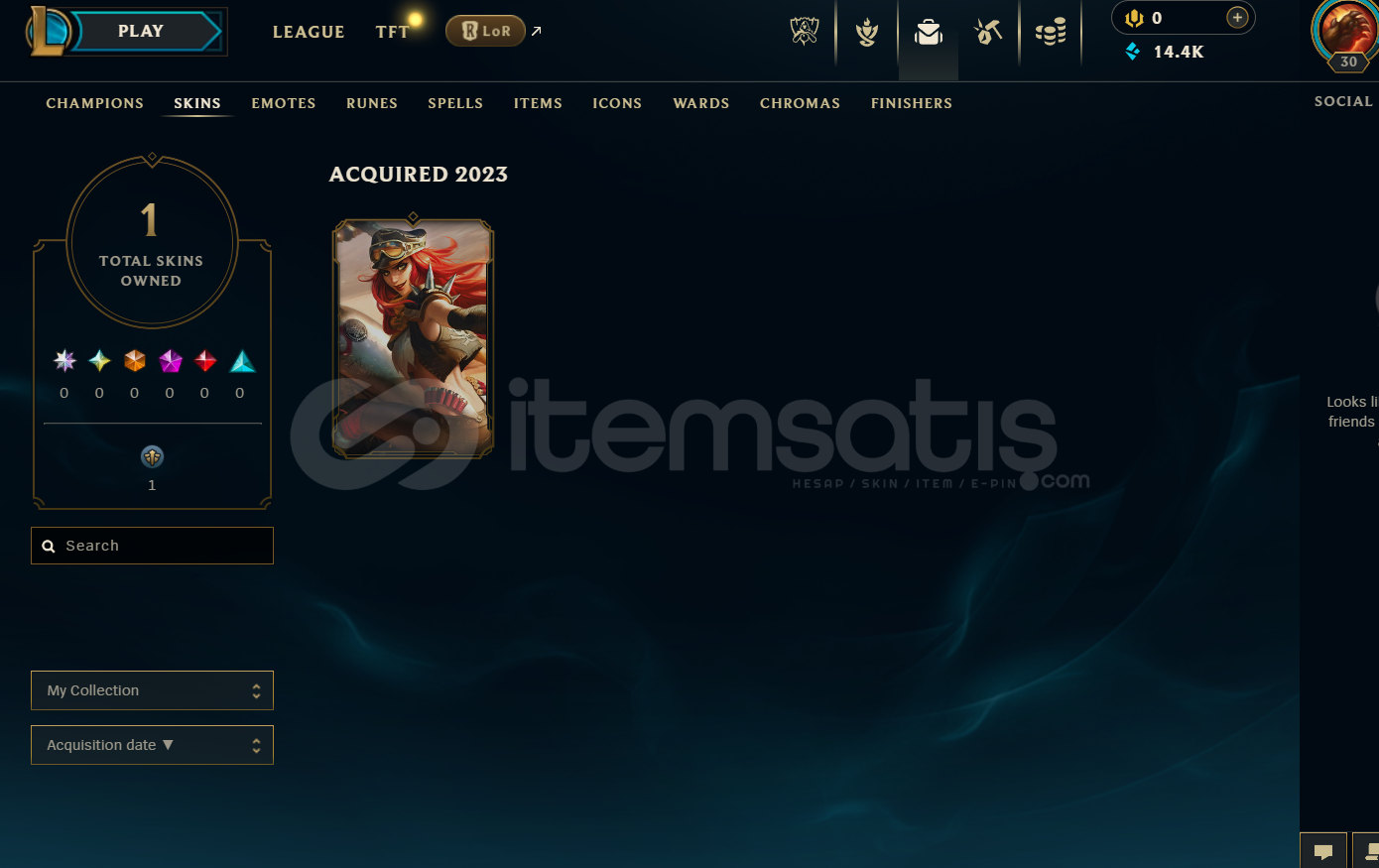 EUW Bronz 1 | 1 Kostüm - 14K Mö | LoL Hesap