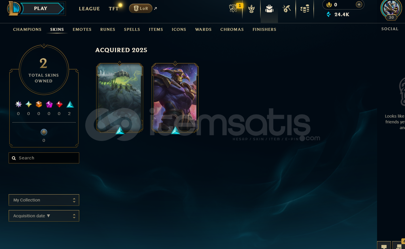 EUW Bronz 2 | 2 Kostüm - 24K Mö | LoL Hesap