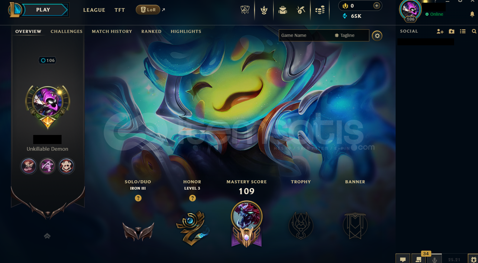 Hesap EUW Tek/Çift Demir 3 - 70 Lp EUW LoL Hesabıdır.