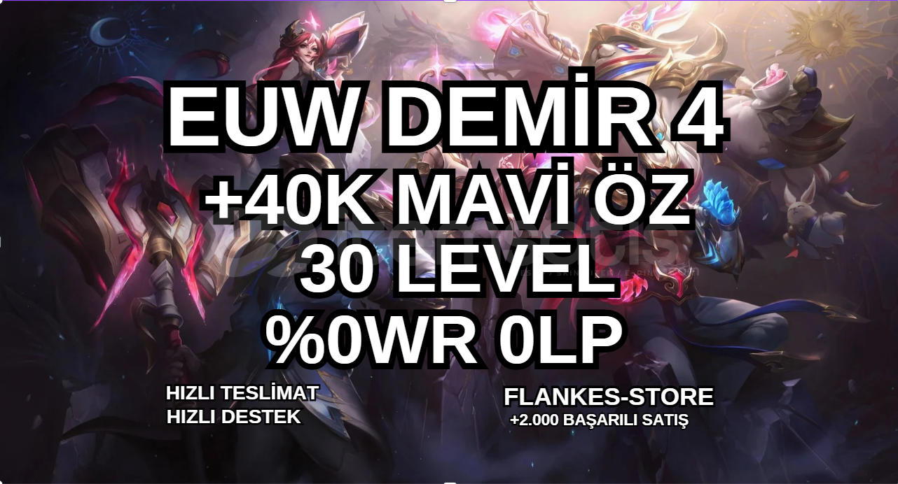 ⭐EUW Demir 4 %0 Winrate 0 LP hesap ilanıdır (Cehennem elo)⭐Bizden alacağınız tüm hesaplar ÖMÜRLÜK HESAPLARDIR. 3 gün sonra giden dandik hesaplardan değildir.Tüm hesaplarımızın RIOT ID'si(Oyun içi nick) değişmektedir. Tamamen kişiselleştirip kullanabilirsiniz.✅Gene de içiniz rahat olsun diye hesapların garantileri mevcuttur. Hesaplarda bir sıkın...