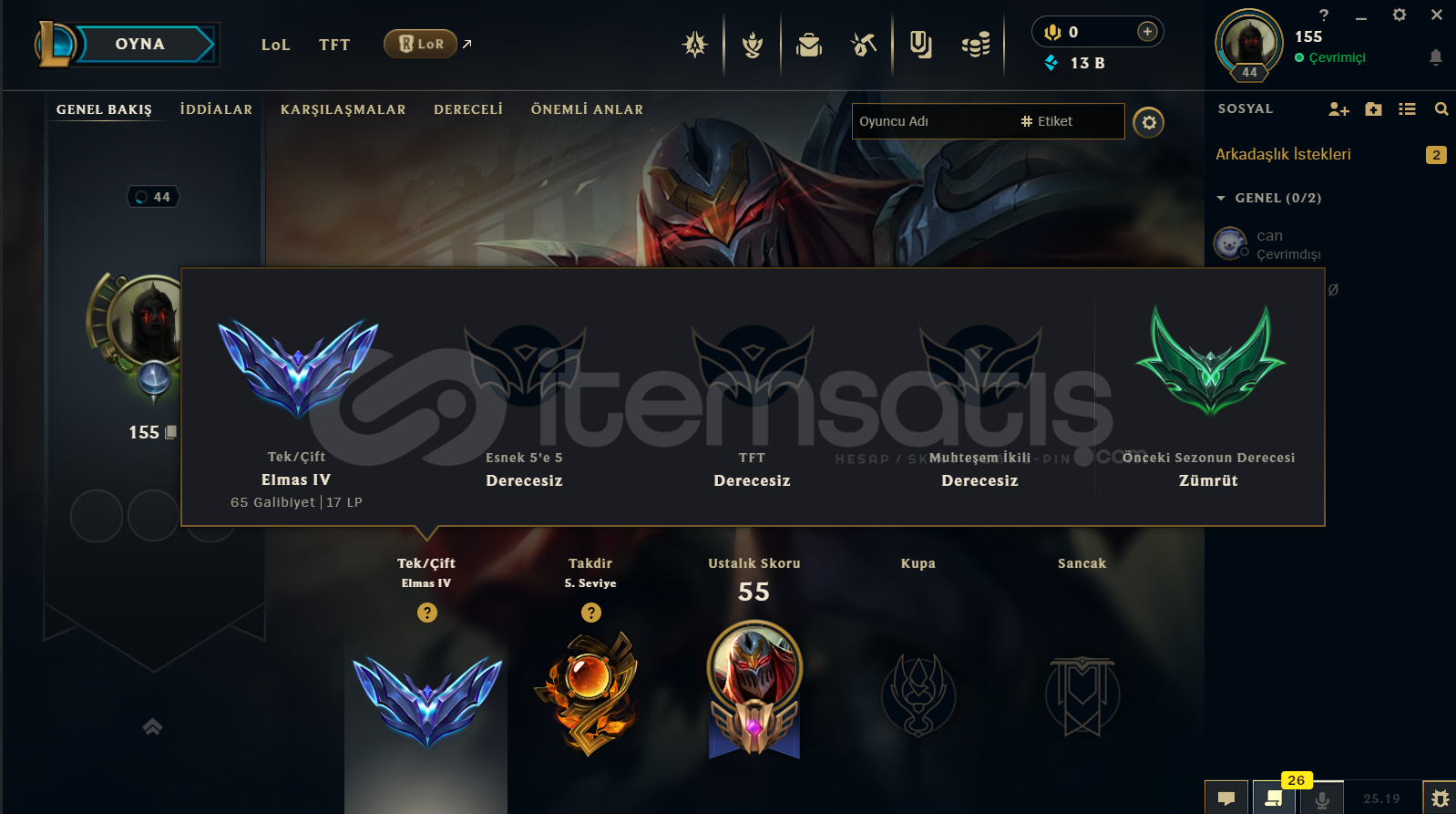 Euw 60 wr Diamond Hesap E posta Onayı Yapılmadı.Hesap Elo hell de Değildir Kolayca Lig atlayabilirsiniz.