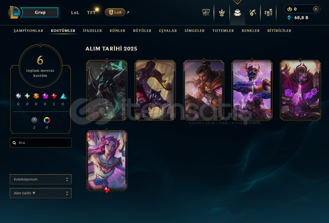 Lig: Elmas IVWinrate: %64Mavi Öz: 69.000Şampiyon Sayısı: 34Kostüm Sayısı: 17 adetİade Hakları: 3 iade hakkı duruyorDurum: Hiç ban yememiş, temiz hesapMail: Mail değişimi yapılacak.Hesap sorunsuzdur, aktif olarak kullanılmış ve yüksek winrate’e sahip temiz bir hesaptır. İlgilenenler için detay verebilirim.