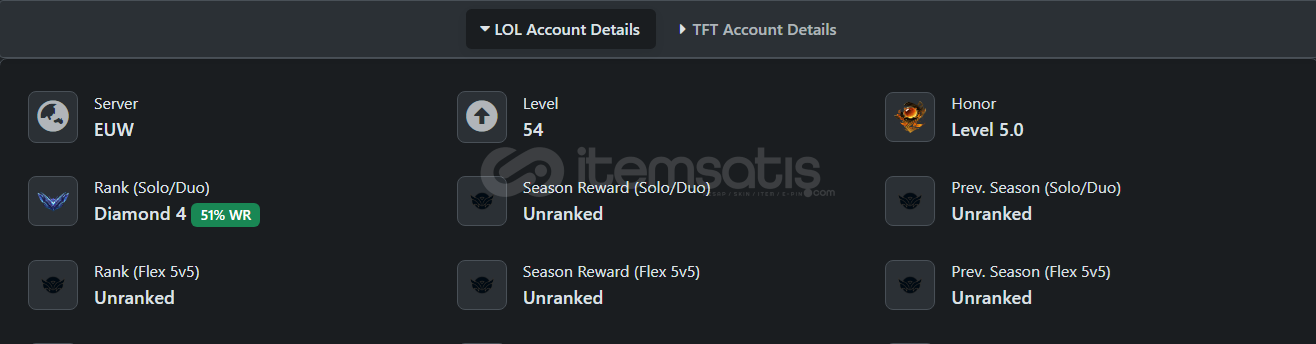 • Hesap EUW Tek/Çift Elmas (Diamond) - EUW Hesabıdır.