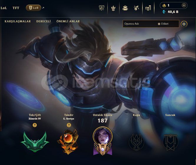 HESAP MAİNLEMELİK GÜZEL HESAPTIR 96 LVL 18 AÇIK KOSTÜM 8 TANE DE GANİMETTE AÇILMAMIŞ KOSTÜM MEVCUTTURHESAPTA 60 ŞAMPIYON 40 K MAVİ ÖZ 1 K DA TURUNCU ÖZ BULUNMAKTADIRHESAP HAKKINDA AKLINIZA TAKILAN BİR ŞEY OLURSA ÇEKİNMEDEN İLETİŞİME GEÇEBİLİRSİNİZ