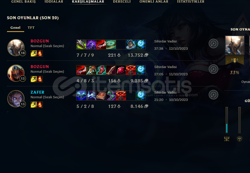 hesap çok eski olduğu için maç geçmişi silinmiş 2023 2022 kurulum