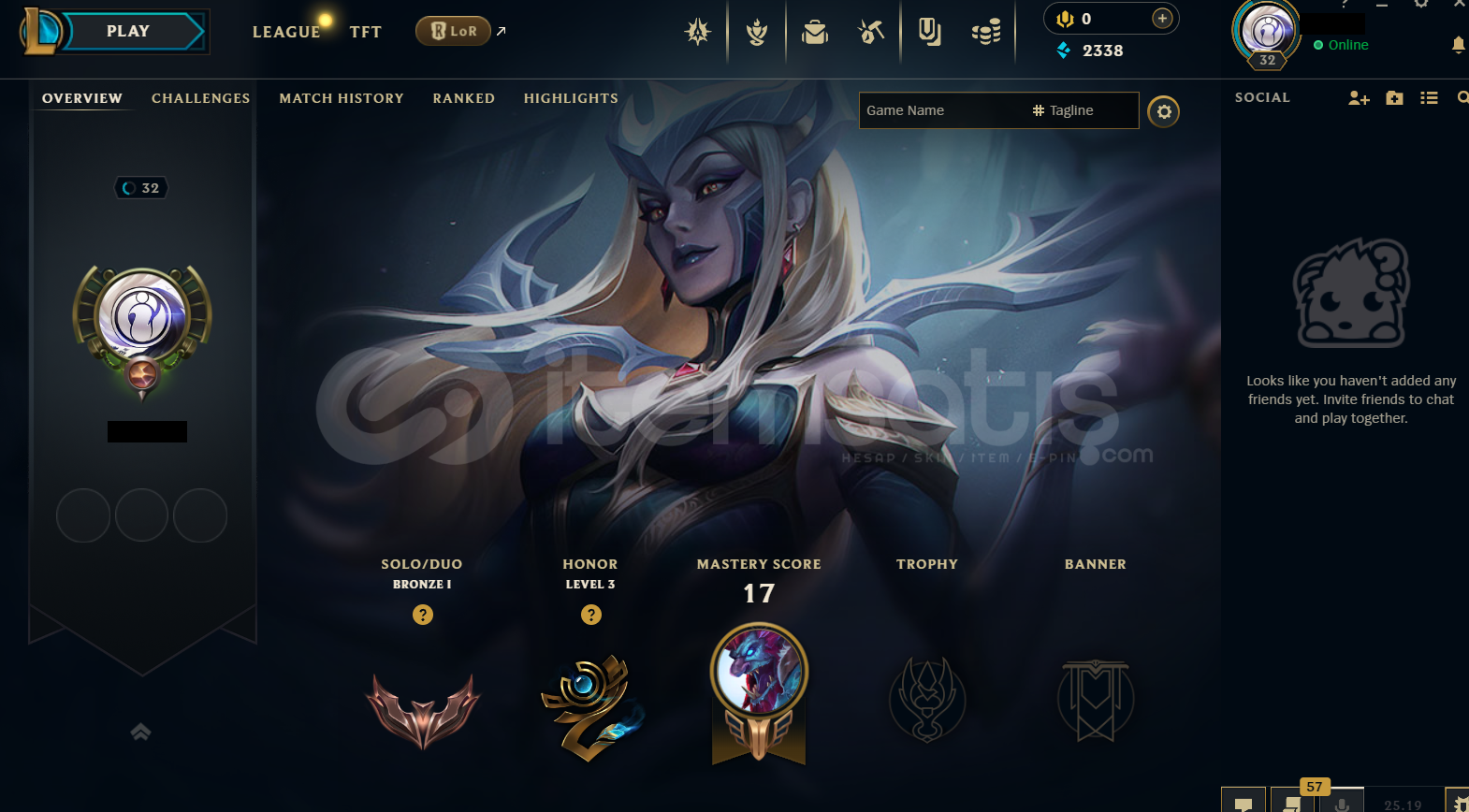 • Hesap EUW Tek/Çift Bronz 1 - 80 Lp - Esnek Gold 1 - 76 Lp EUW LoL Hesabıdır.