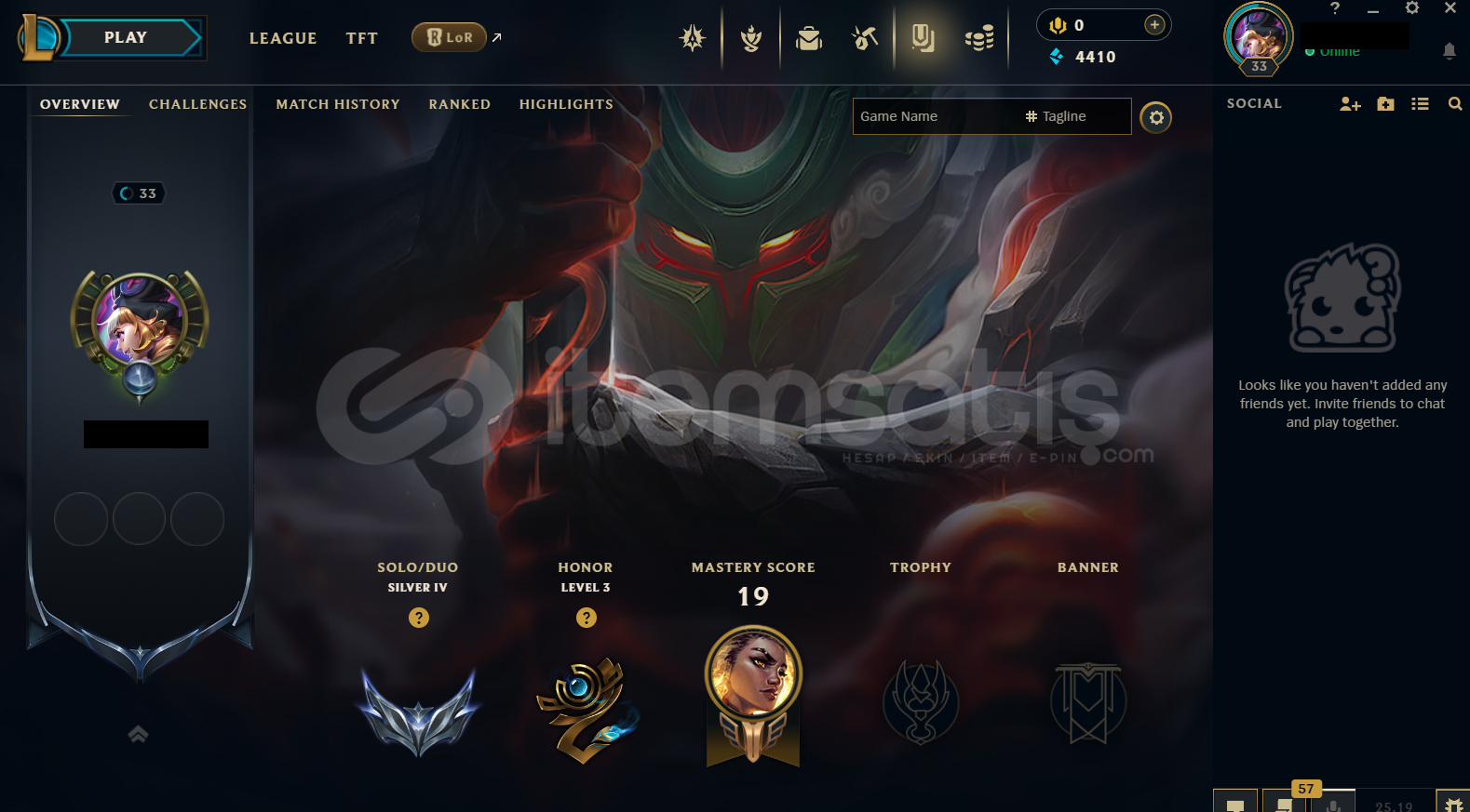 • Hesap EUW Tek/Çift Silver 4 - 99 Lp - Esnek Gold 1 - 76 Lp EUW LoL Hesabıdır.