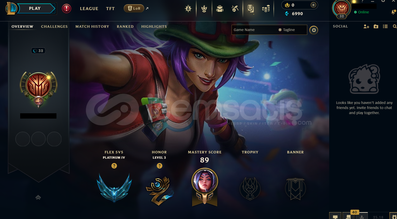 Hesap EUW Tek/Çift Bronz 1 - Esnek Plat 4 - 44 Lp EUW LoL Hesabıdır.