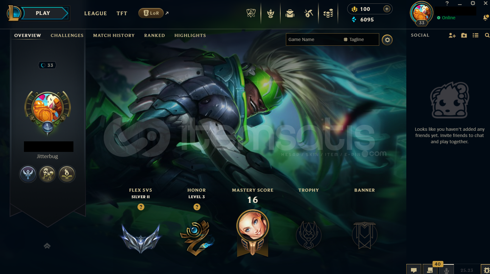Hesap EUW Tek/Çift Unranked - Esnek Silver 2 - 15 Lp EUW LoL Hesabıdır.