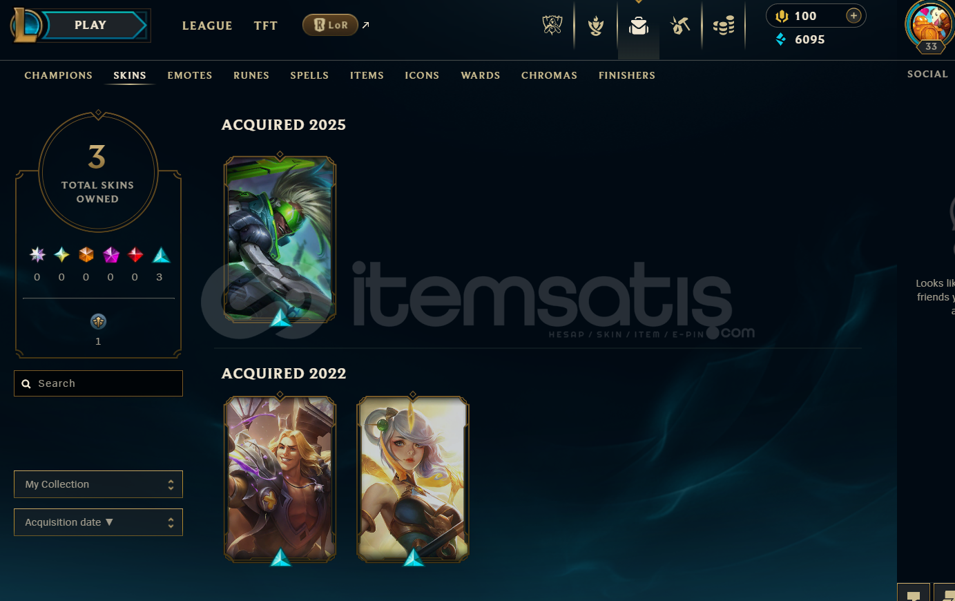 HESAP DETAYLARI:Hesap hiç ban yememiştir ve takdir seviyesi 3 dür.Hesap EUW Tek/Çift Unranked - Esnek Silver 2 - 15 Lp EUW LoL Hesabıdır.İçerisinde 6095 Mavi Öz 3 Kostüm 33 Hero ve 3 Adet İade Hakkı Mevcuttur.HESAP HAKKINDA:Kendi mail adresinize kayıt edebilir, etkinleştirmeyi kaldırabilir ve şifresini değiştirebilirsiniz.Hesaplarımızda hiç bir sıkıntı çıkma...