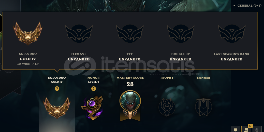 EUW Fresh MMR Gold 4 Hesap 38 lp verir