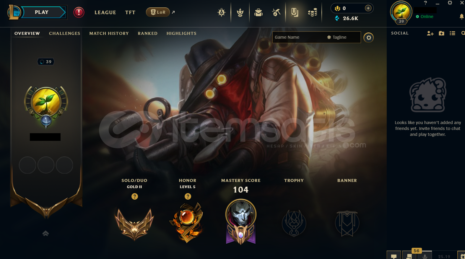 • Hesap EUW Tek/Çift Gold 2 - 93 Lp - 60 Winrate EUW LoL Hesabıdır.