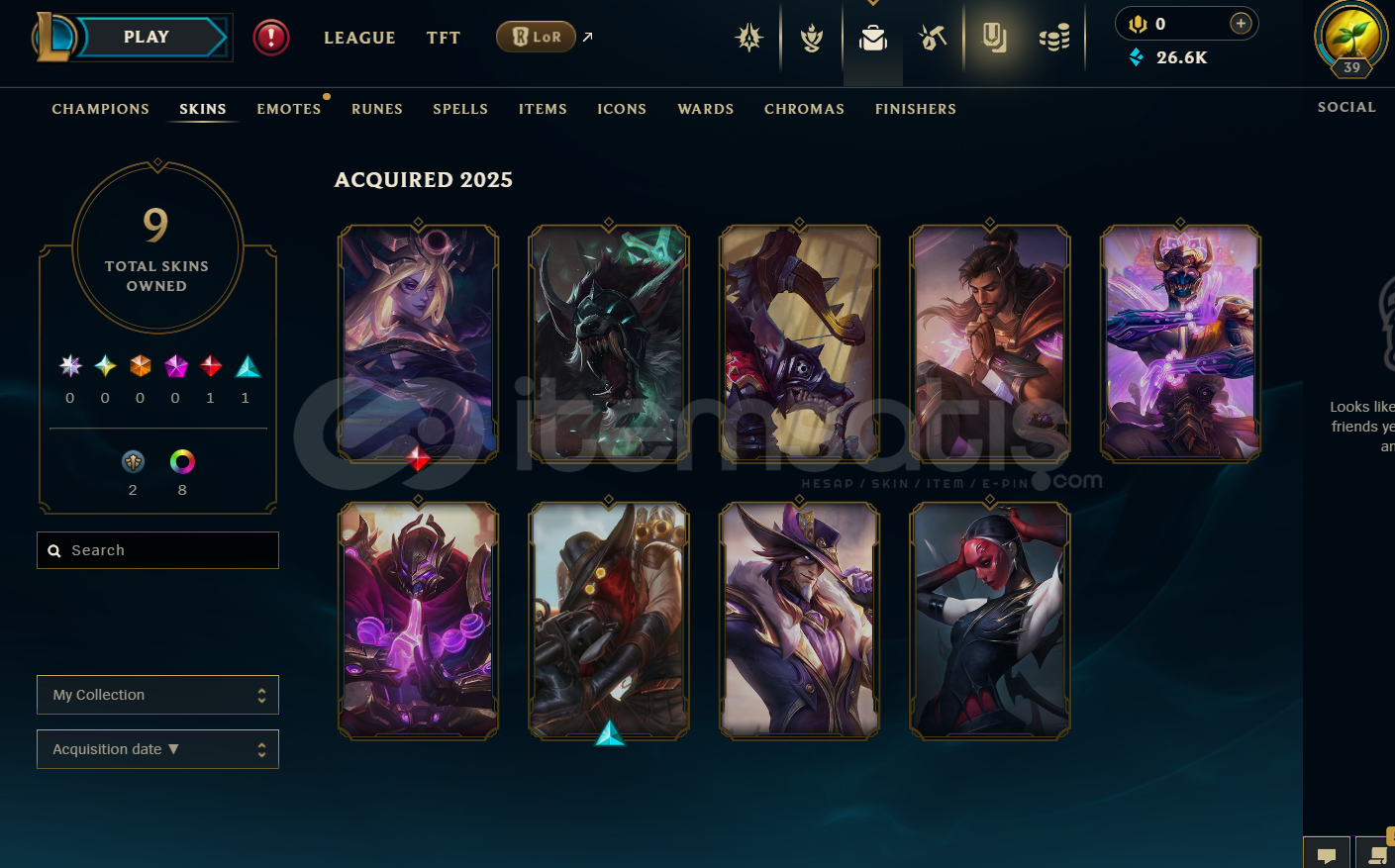 EUW Gold 2 | 9 Kostüm - 26K Mö | LoL Hesap
