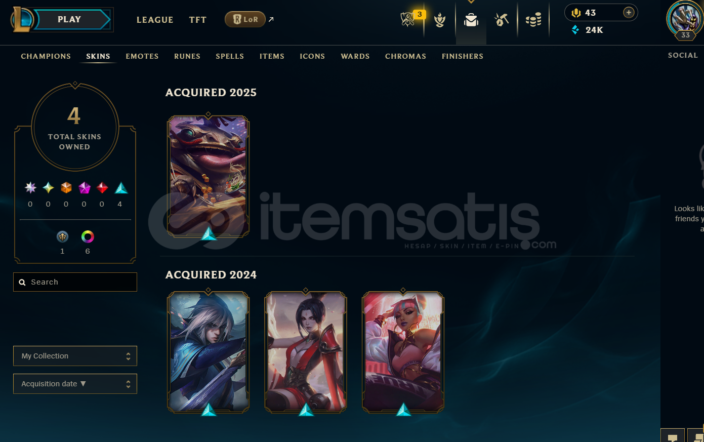 EUW Gold 3 | 4 Kostüm - 24K Mö | LoL Hesap