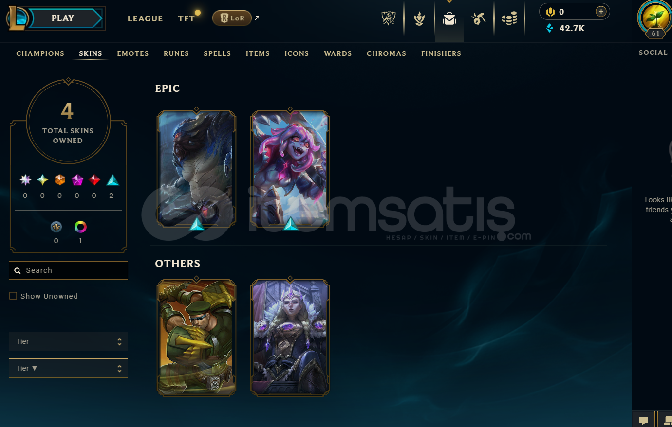 EUW Gold 3 | 4 Kostüm - 42K Mö | LoL Hesap