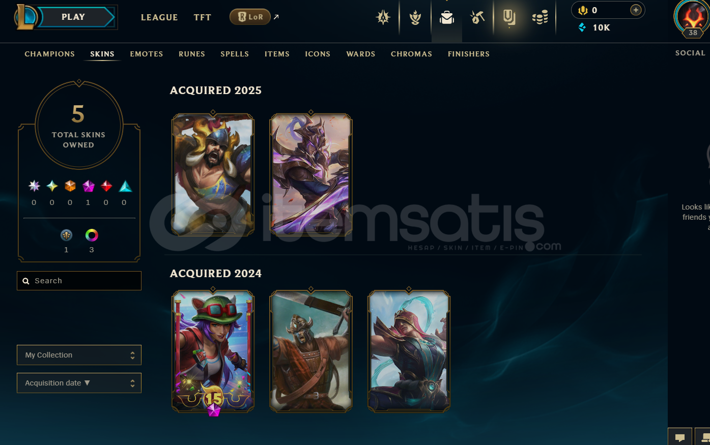 EUW Gold 3 | 5 Kostüm - 10K Mö | LoL Hesap